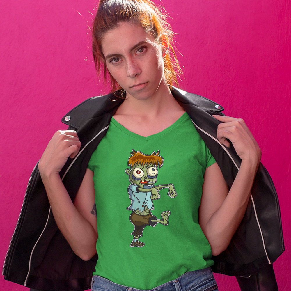A print featuring a zombie, walking in a stereotypical movie fashion with the arms extended forward. The zombie has messy ginger hair and eyes popping out but he looks rather funny and non-threatening. A great choice for a person who is into horror movies