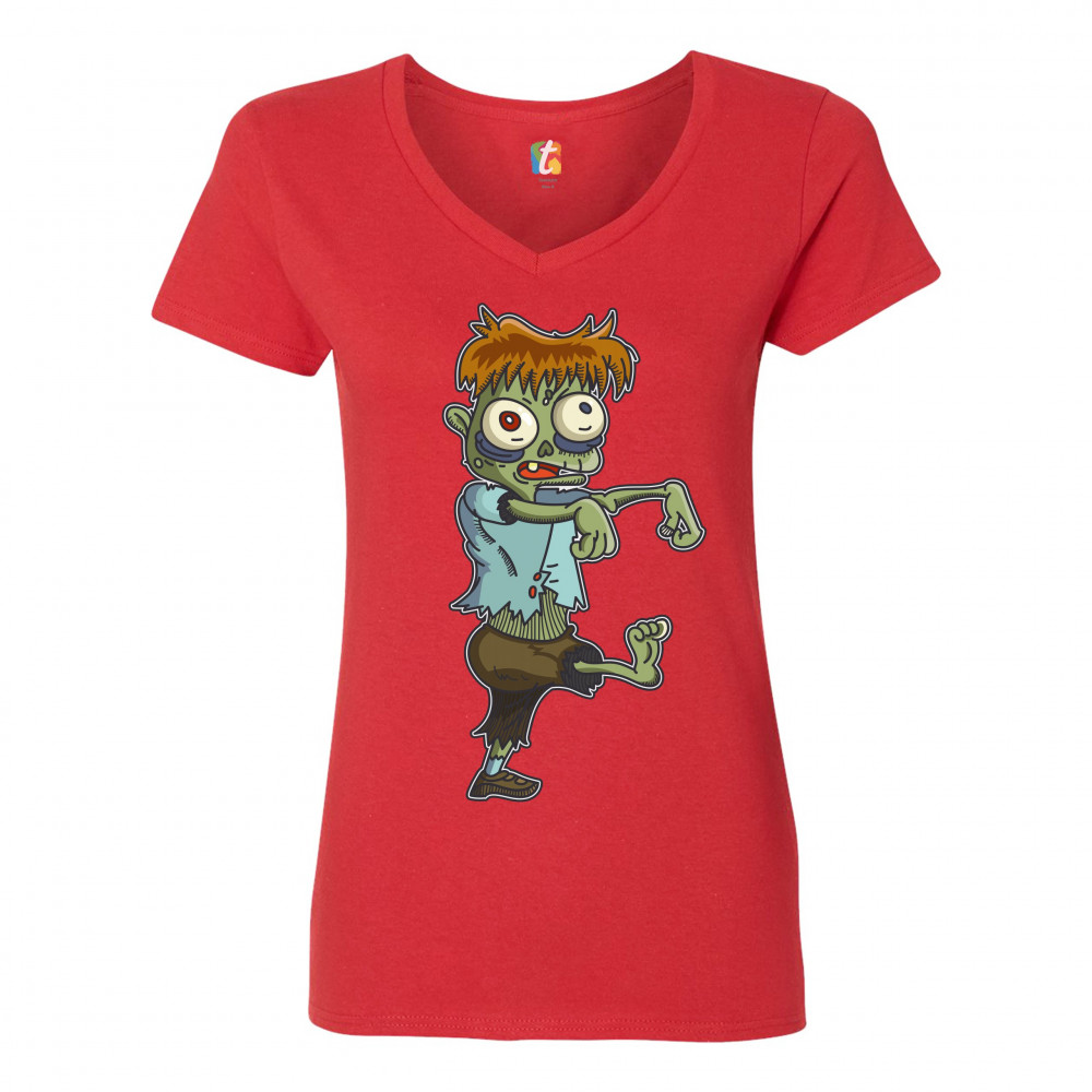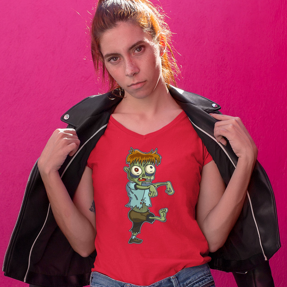 A print featuring a zombie, walking in a stereotypical movie fashion with the arms extended forward. The zombie has messy ginger hair and eyes popping out but he looks rather funny and non-threatening. A great choice for a person who is into horror movies