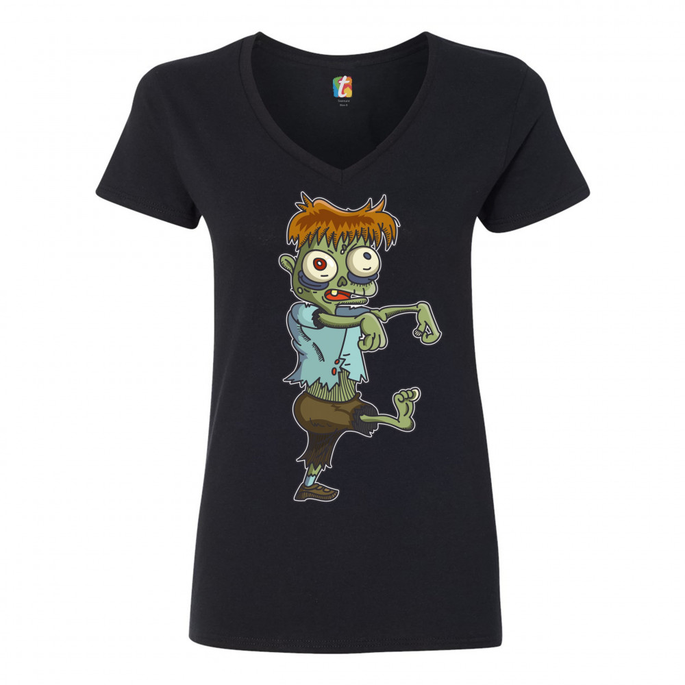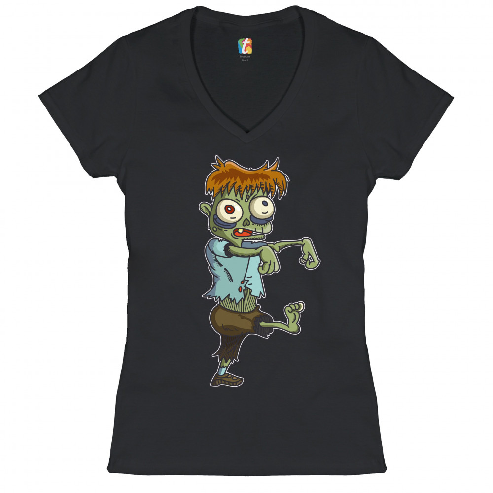 A print featuring a zombie, walking in a stereotypical movie fashion with the arms extended forward. The zombie has messy ginger hair and eyes popping out but he looks rather funny and non-threatening. A great choice for a person who is into horror movies