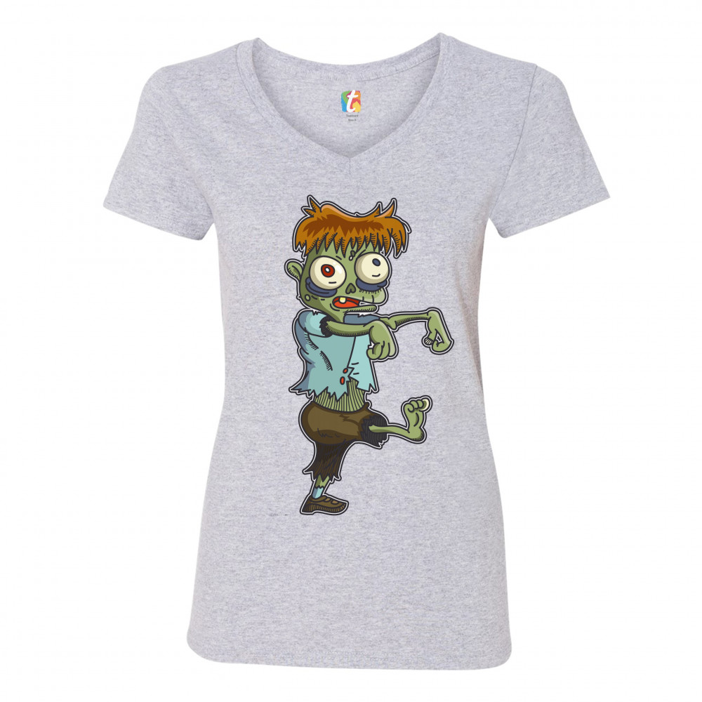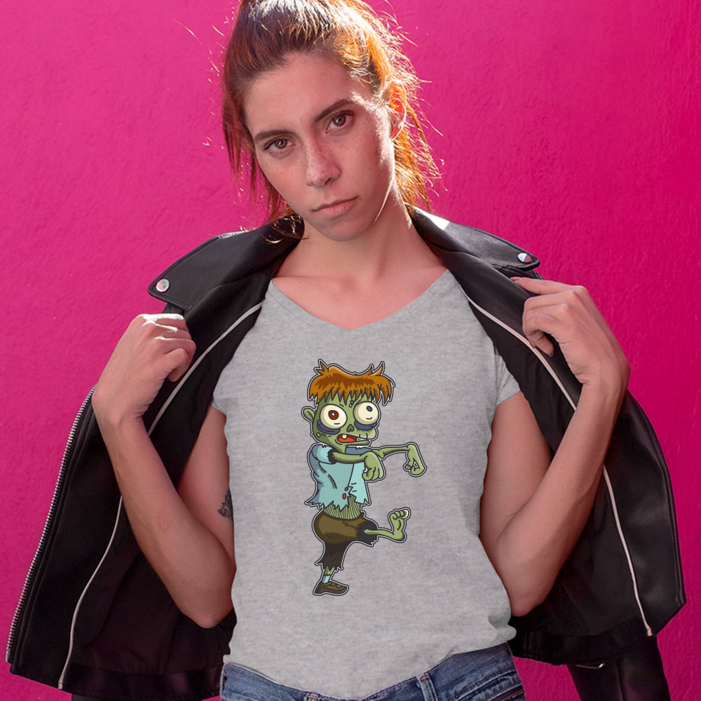 A print featuring a zombie, walking in a stereotypical movie fashion with the arms extended forward. The zombie has messy ginger hair and eyes popping out but he looks rather funny and non-threatening. A great choice for a person who is into horror movies