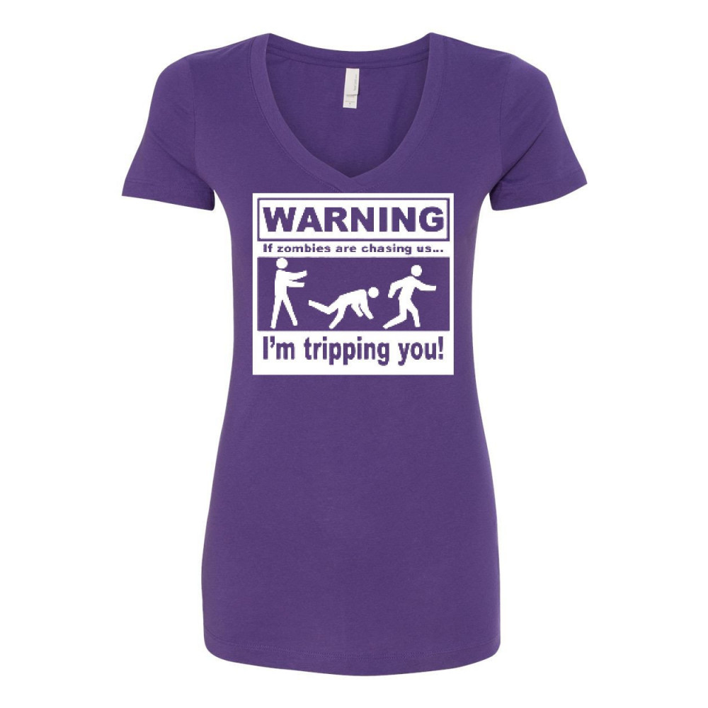 WARNING IF ZOMBIES ARE CHASING US I'M TRIPPING YOU v-neck t-shirt 0 purple