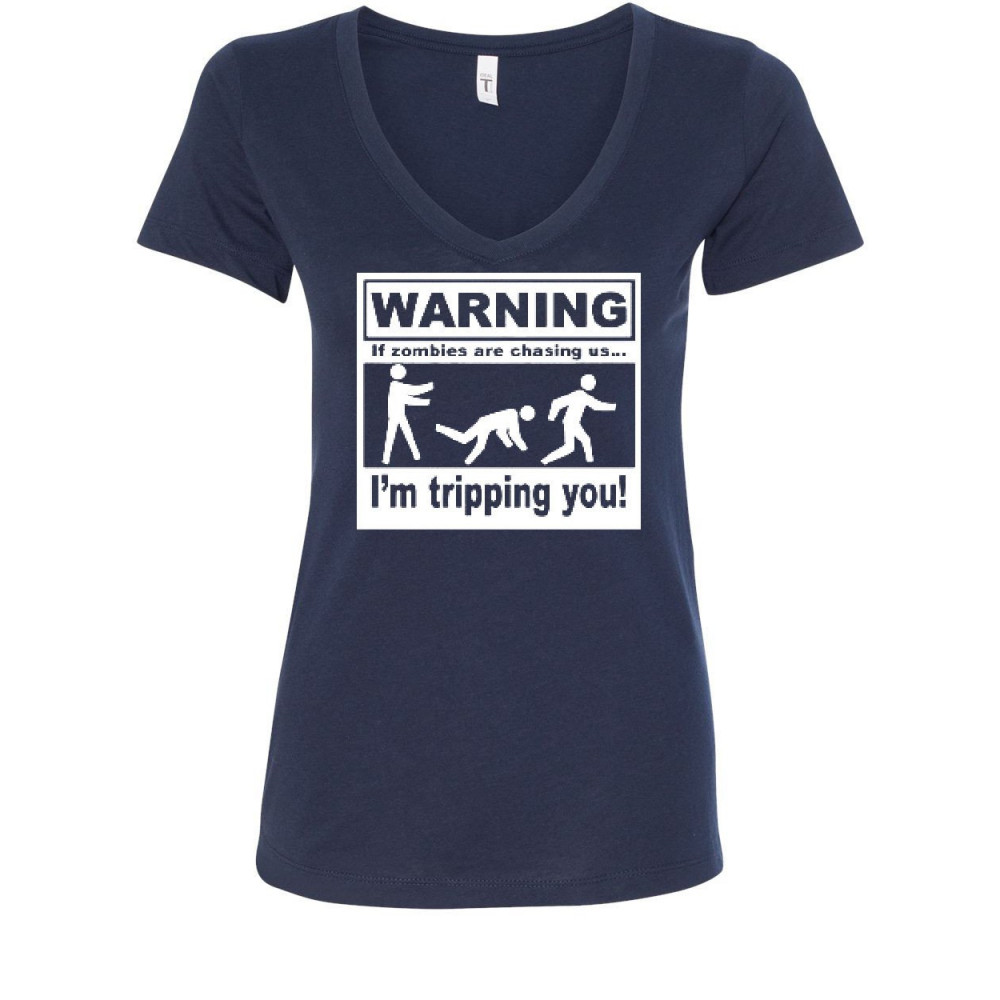 WARNING IF ZOMBIES ARE CHASING US I'M TRIPPING YOU v-neck t-shirt 0 navy blue