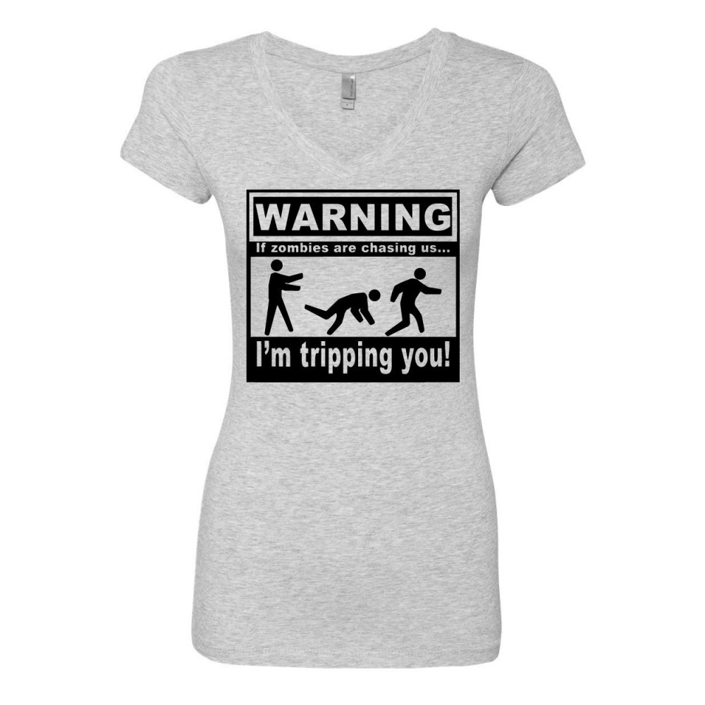IF ZOMBIES ARE CHASING US I'M TRIPPING YOU v-neck t-shirt gray