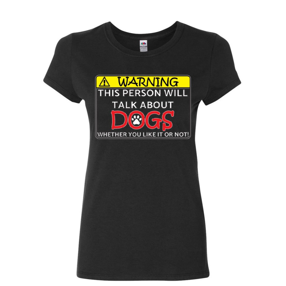 WARNING! THIS PERSON WILL TALK ABOUT DOGS women's t-shirt puppy pet paw shirt black