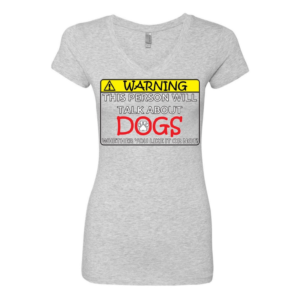 WARNING! THIS PERSON WILL TALK ABOUT DOGS women's v-neck t-shirt puppy pet paw gray