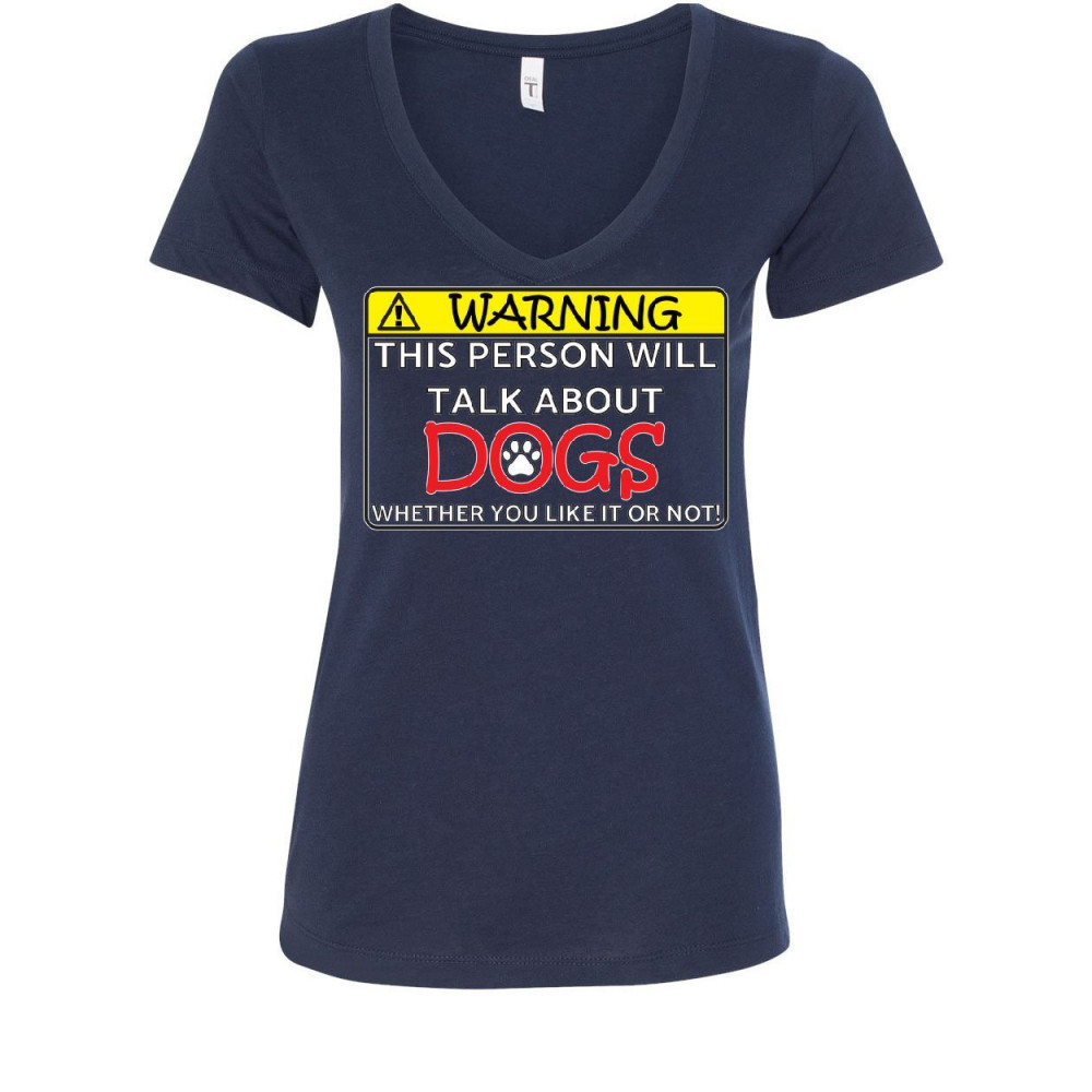 WARNING! THIS PERSON WILL TALK ABOUT DOGS women's v-neck t-shirt puppy pet paw navy blue