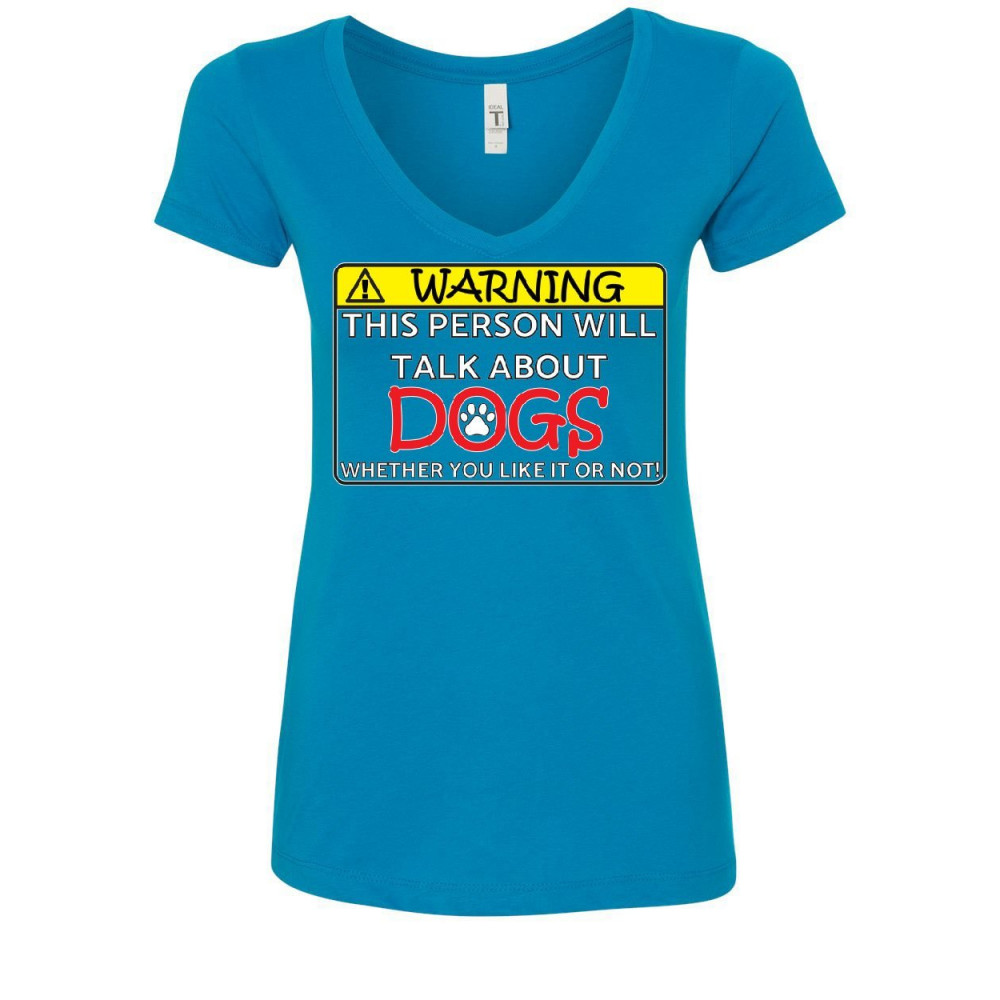 WARNING! THIS PERSON WILL TALK ABOUT DOGS women's v-neck t-shirt puppy pet paw turquoise