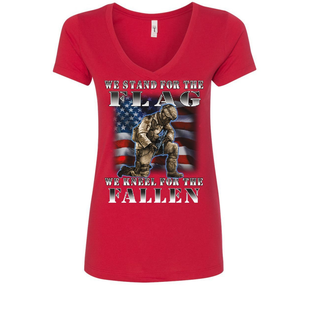 WE STAND FOR THE FLAG women's v-neck t-shirt veteran military pow mia army navy red