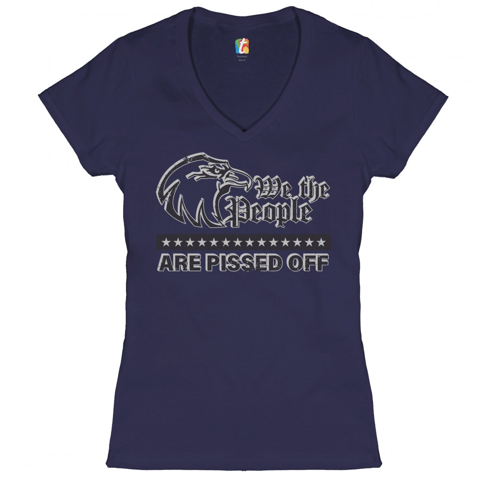 WE THE PEOPLE ARE PISSED OFF women's v-neck t-shirt fight for democracy tee navy blue