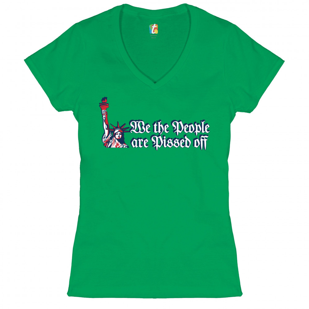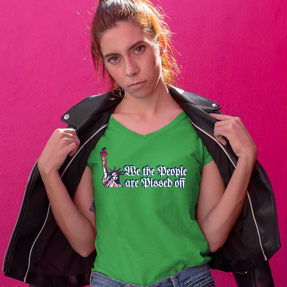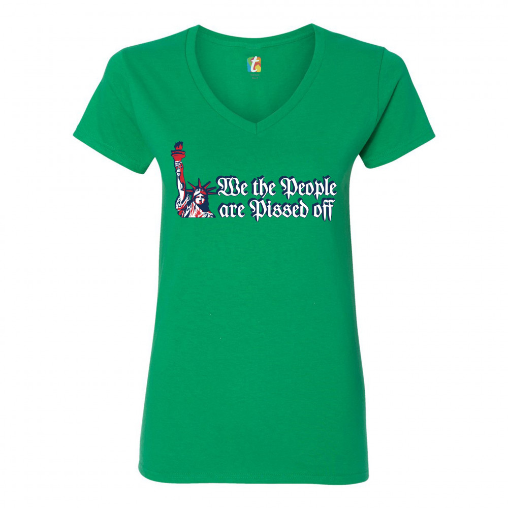WE THE PEOPLE ARE PISSED OFF women's v-neck t-shirt statue of liberty tee green