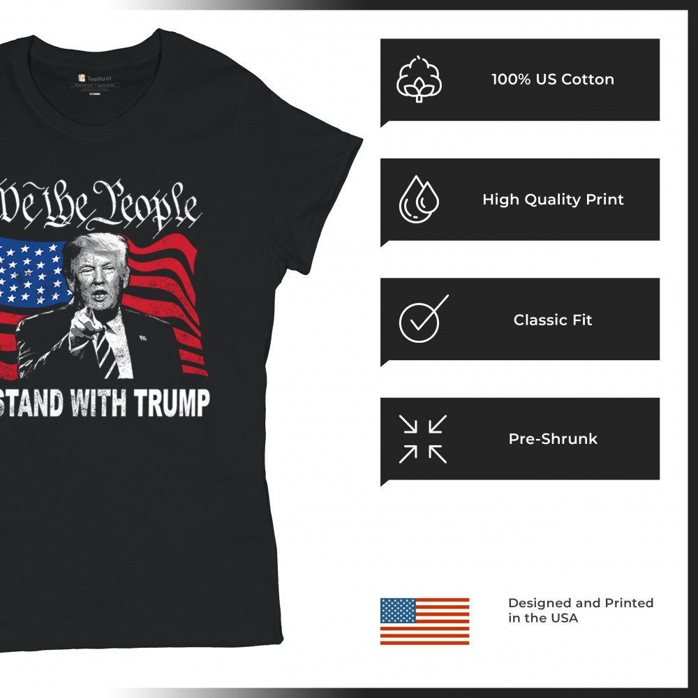 Show your support for Trump with the "We the People Stand with Trump" design. A powerful symbol of patriotism, featuring Trump and the American flag. Stand up for conservative values.