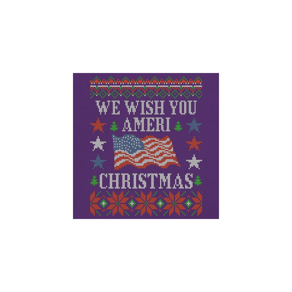 WE WISH YOU AMERI CHRISTMAS women's v-neck t-shirt ugly sweater patriotic tee purple