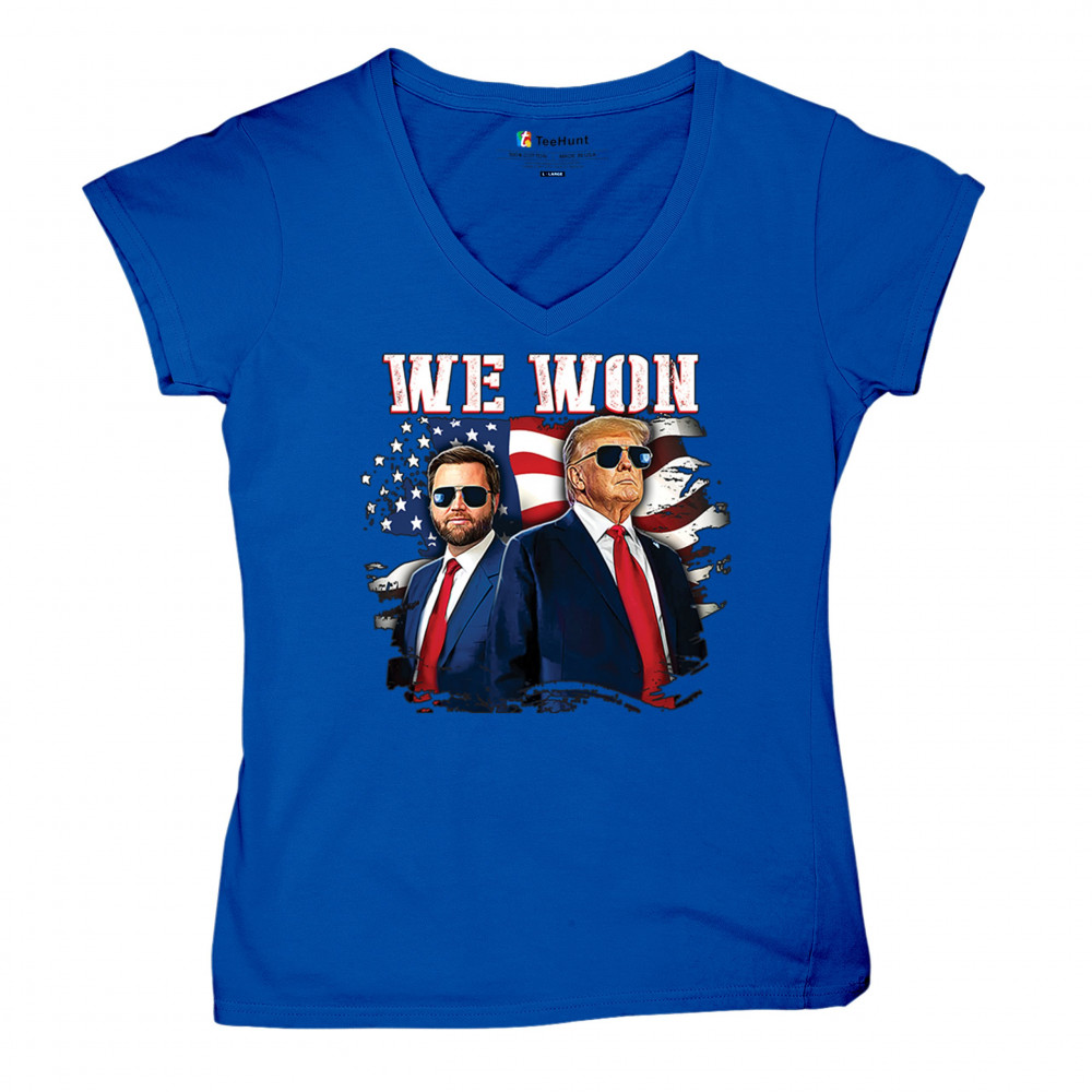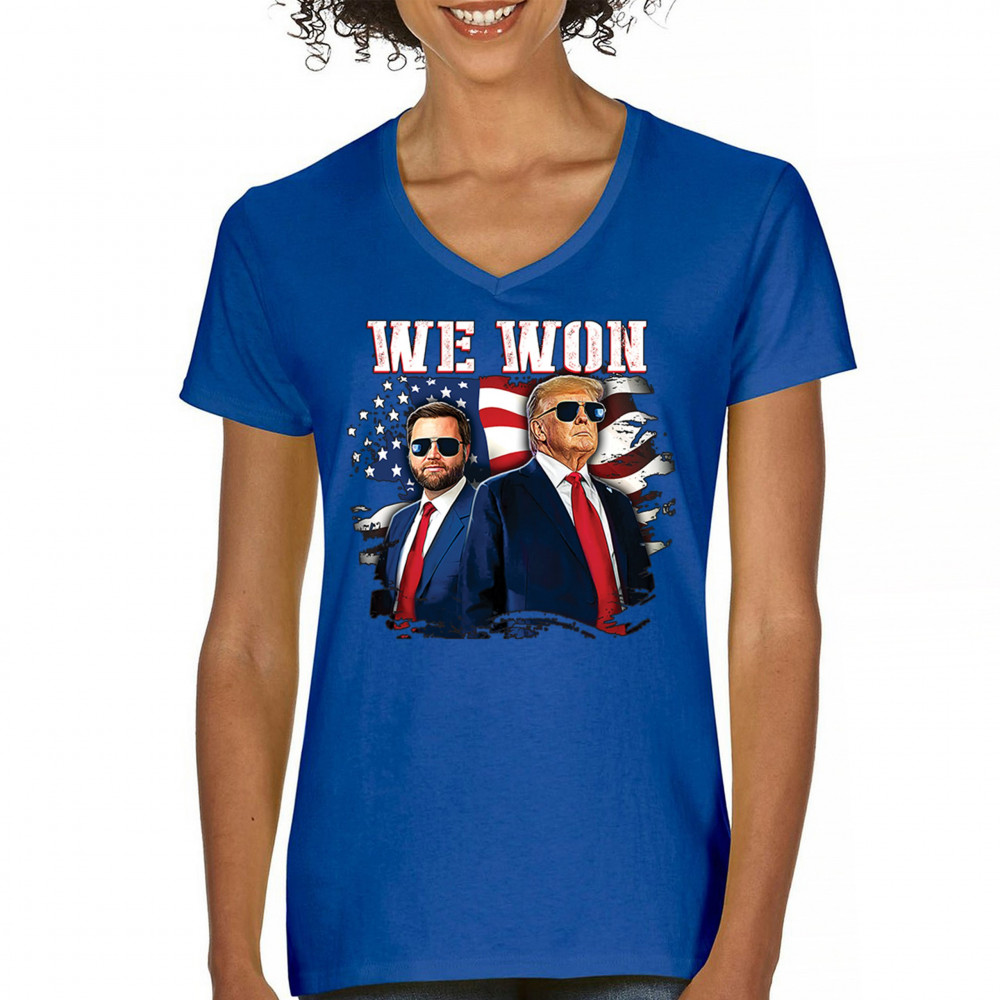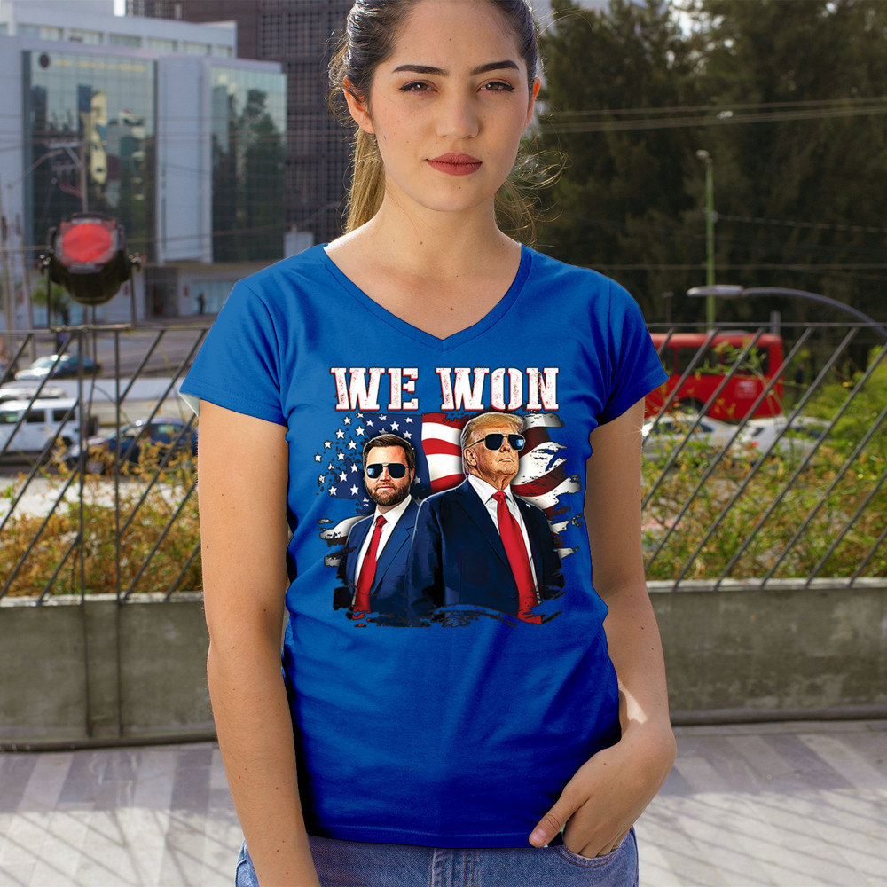 Celebrate Republican victory with this bold "We Won" design featuring Trump and patriotic flair—perfect for rallies, events, and patriotic pride.