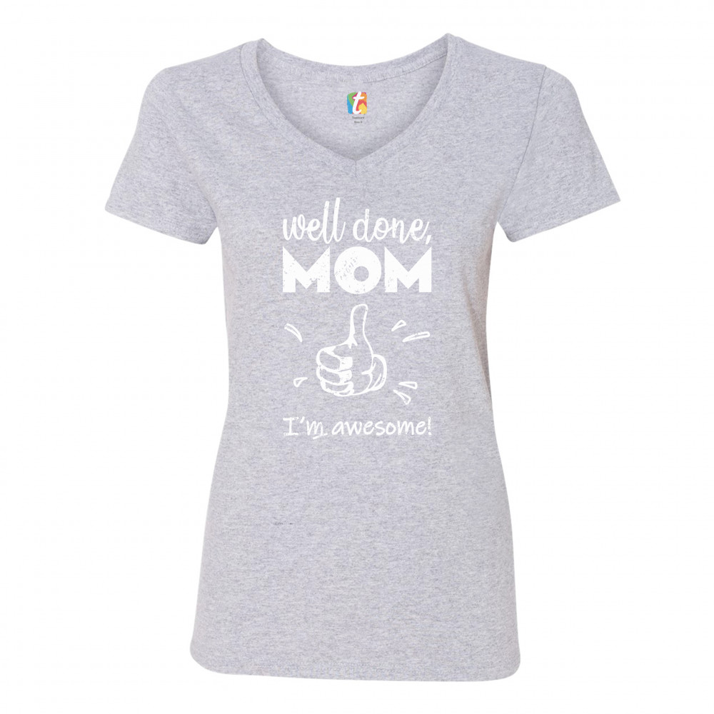WELL DONE MOM I'M AWESOME women's v-neck t-shirt mother's day love you mom tee gray