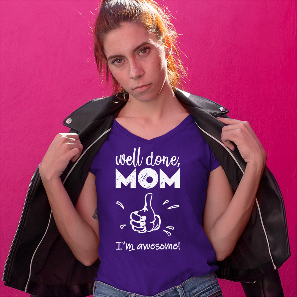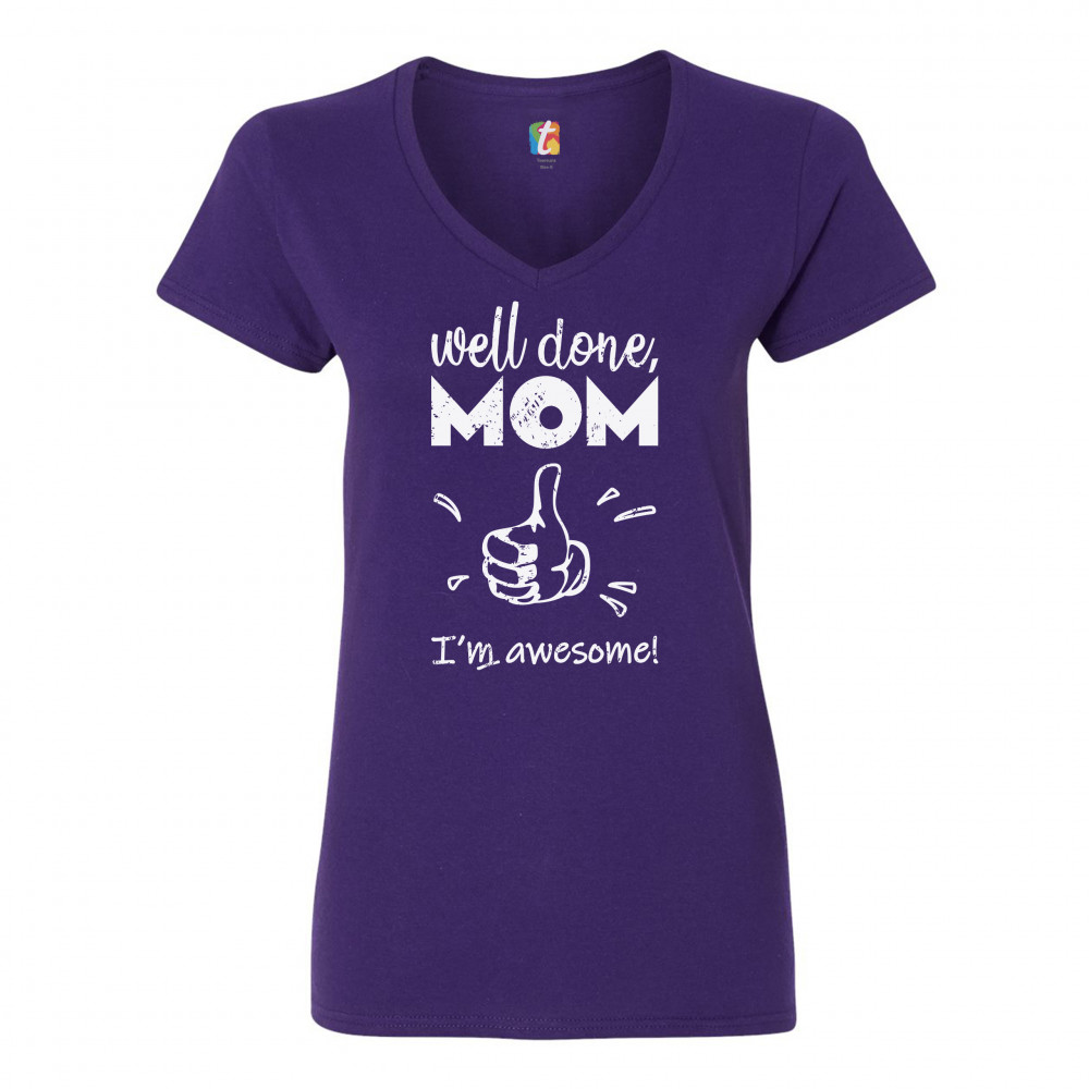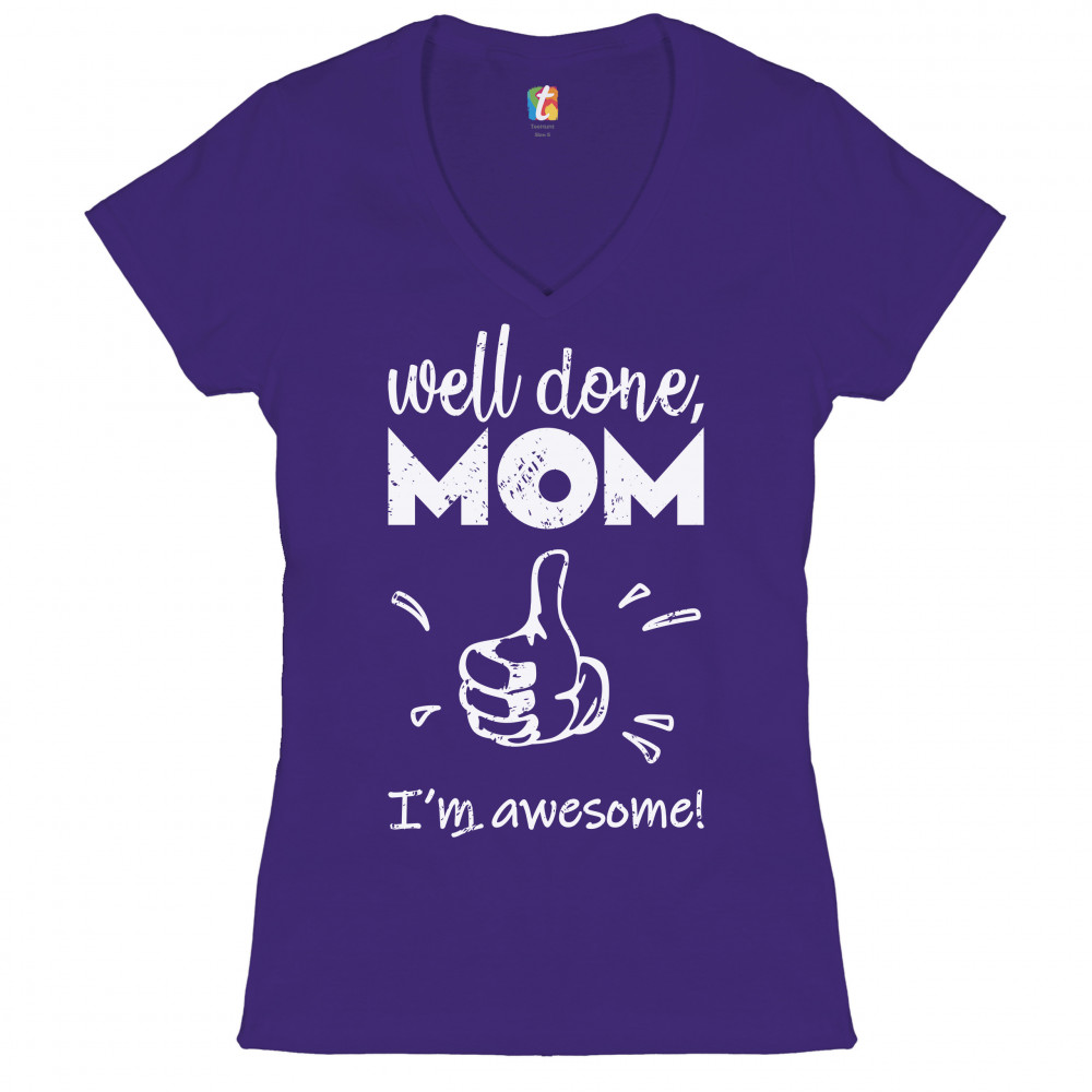 WELL DONE MOM I'M AWESOME women's v-neck t-shirt mother's day love you mom tee purple