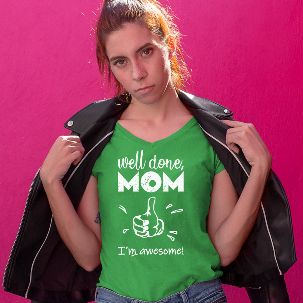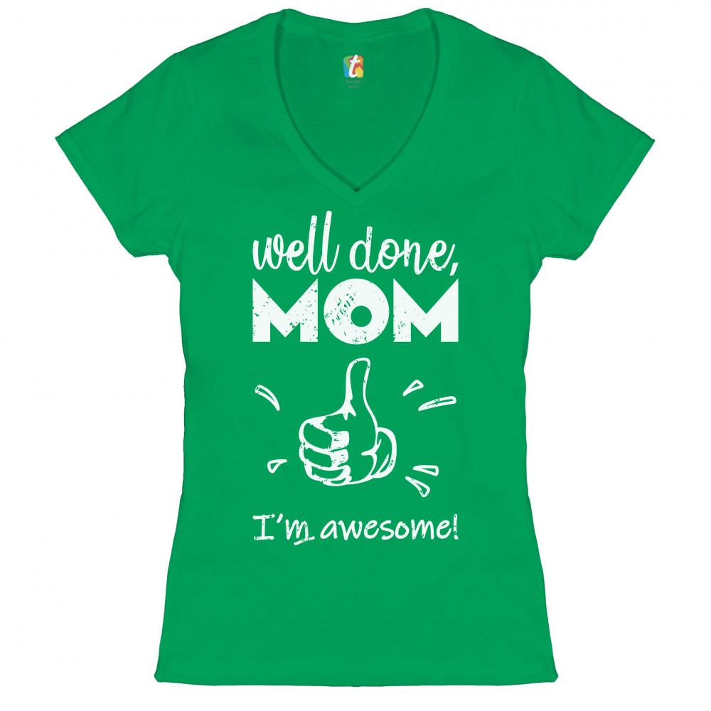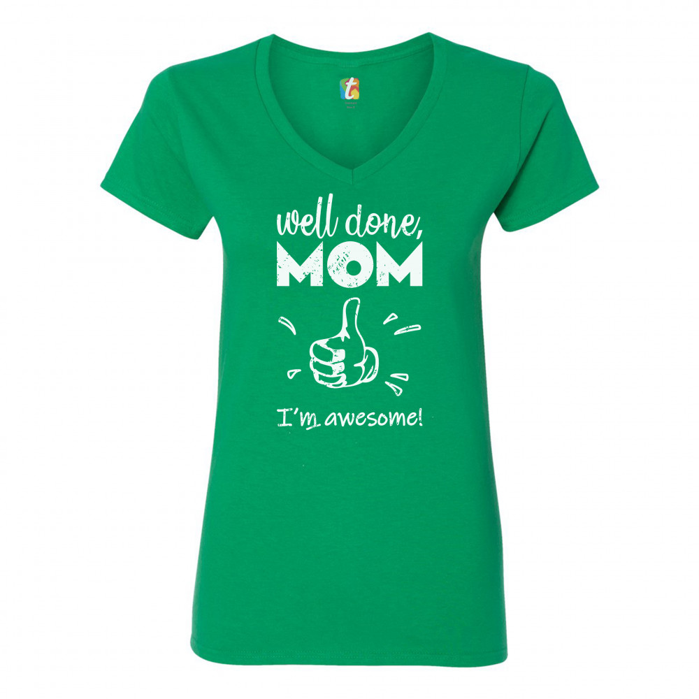WELL DONE MOM I'M AWESOME women's v-neck t-shirt mother's day love you mom tee green