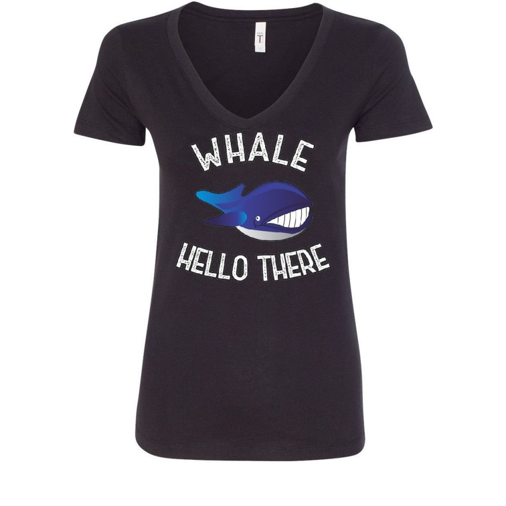 WHALE HELLO THERE women's v-neck t-shirt funny wildlife ocean cute pun wordplay black