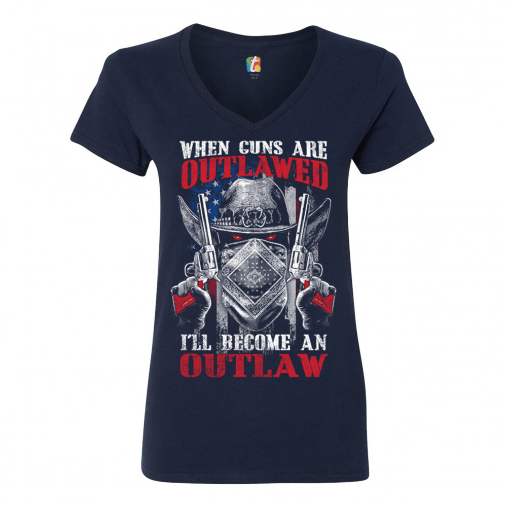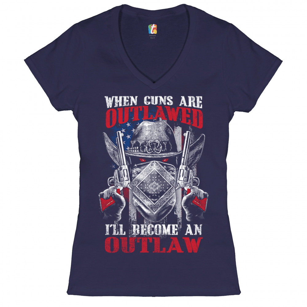 WHEN GUNS ARE OUTLAWED I'LL BECOME AN OUTLAW women's v-neck t-shirt 2a gun tee navy blue