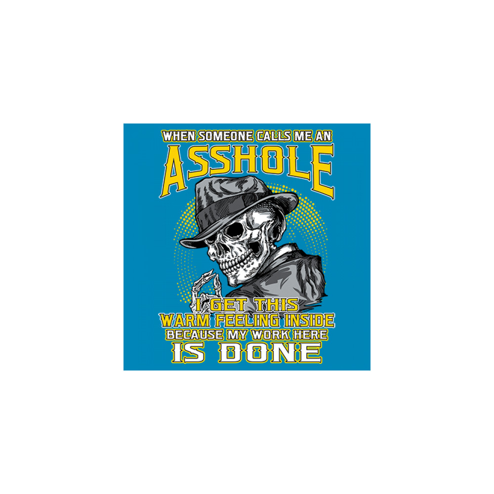 This badass design features a smirking skull in a fedora with a cigarette, backed by the line: “When someone calls me an asshole... my work here is done.†Built for dark humor fans, skull art lovers, and those who live life with sharp wit and zero regrets. Ideal for biker rallies, sarcasm nights, or anyone owning their attitude with pride.
