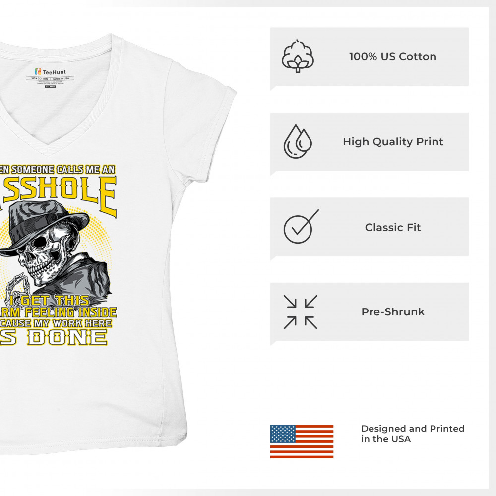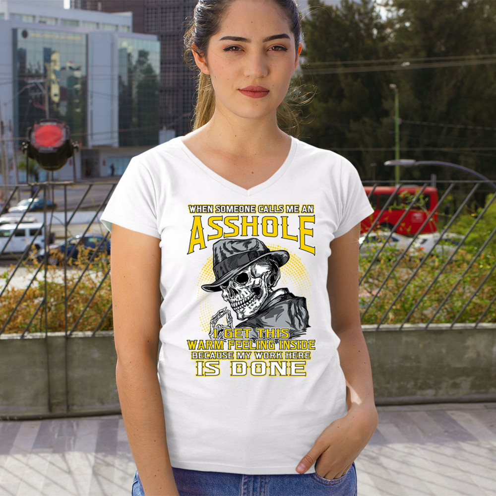 This badass design features a smirking skull in a fedora with a cigarette, backed by the line: “When someone calls me an asshole... my work here is done.†Built for dark humor fans, skull art lovers, and those who live life with sharp wit and zero regrets. Ideal for biker rallies, sarcasm nights, or anyone owning their attitude with pride.
