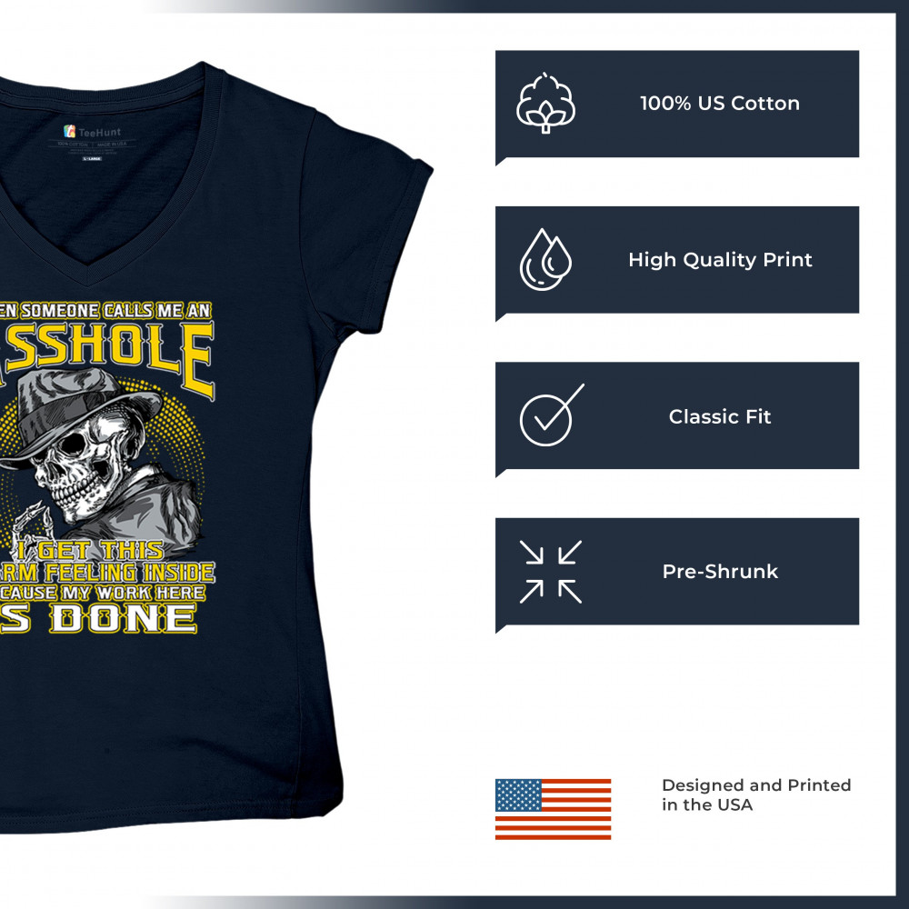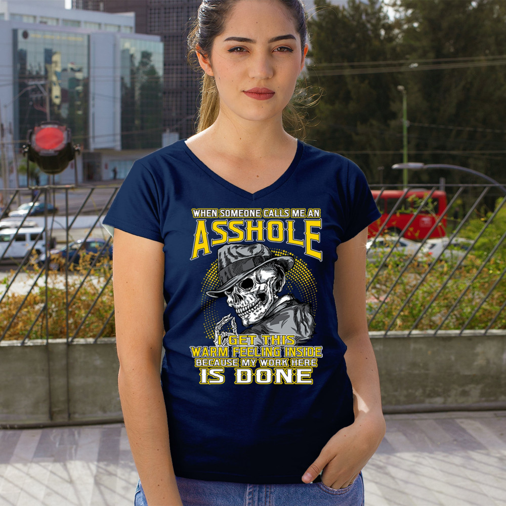 This badass design features a smirking skull in a fedora with a cigarette, backed by the line: “When someone calls me an asshole... my work here is done.†Built for dark humor fans, skull art lovers, and those who live life with sharp wit and zero regrets. Ideal for biker rallies, sarcasm nights, or anyone owning their attitude with pride.