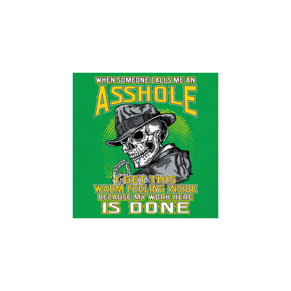 This badass design features a smirking skull in a fedora with a cigarette, backed by the line: “When someone calls me an asshole... my work here is done.†Built for dark humor fans, skull art lovers, and those who live life with sharp wit and zero regrets. Ideal for biker rallies, sarcasm nights, or anyone owning their attitude with pride.