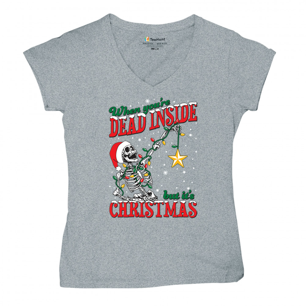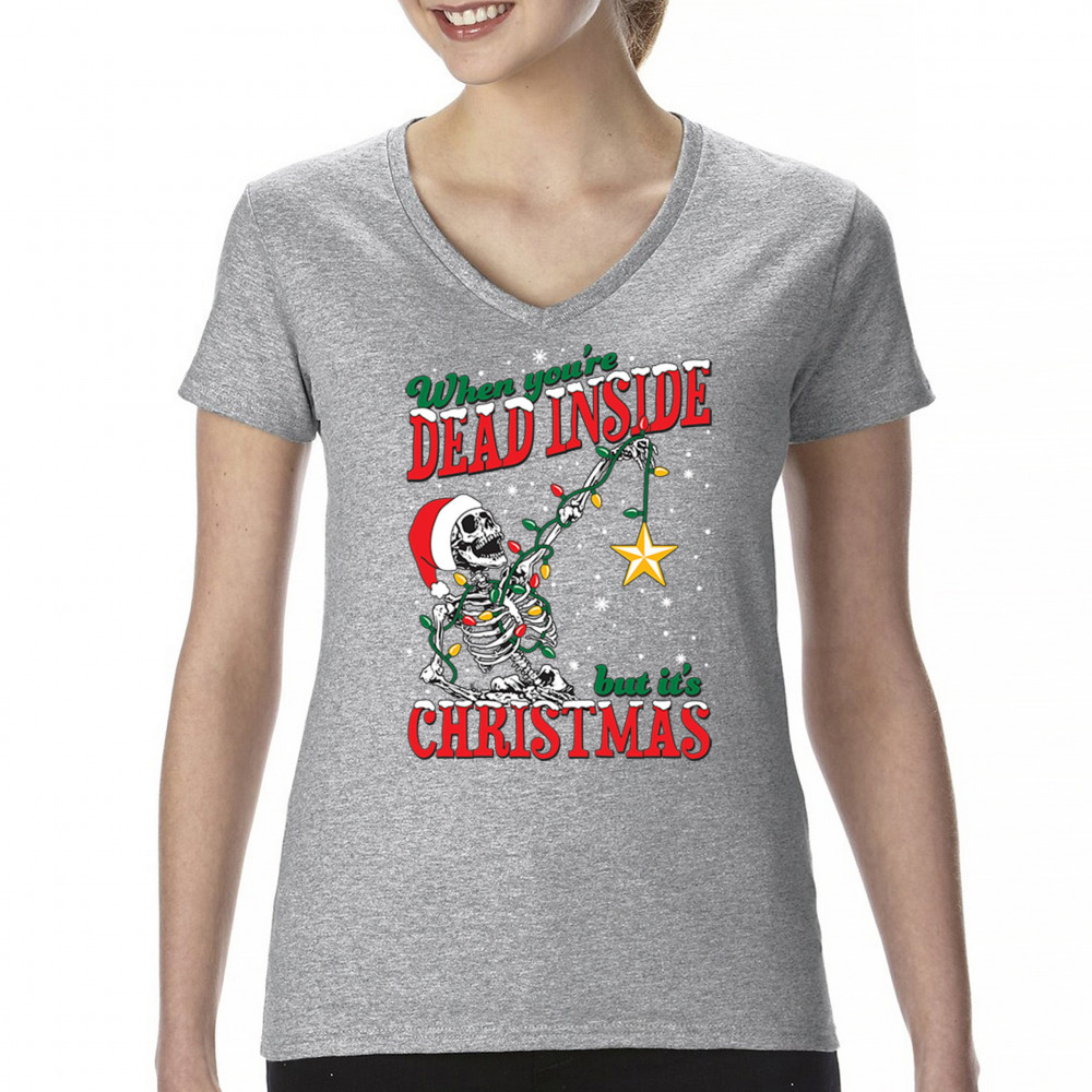 Celebrate humor and holiday spirit with the "When You're Dead Inside But It's Christmas" skeleton design. Perfect for parties and unique gifts.