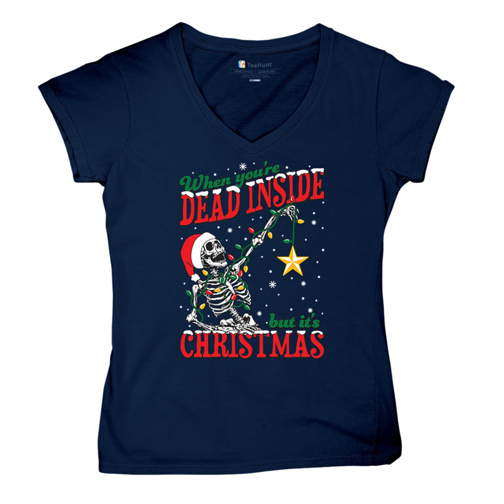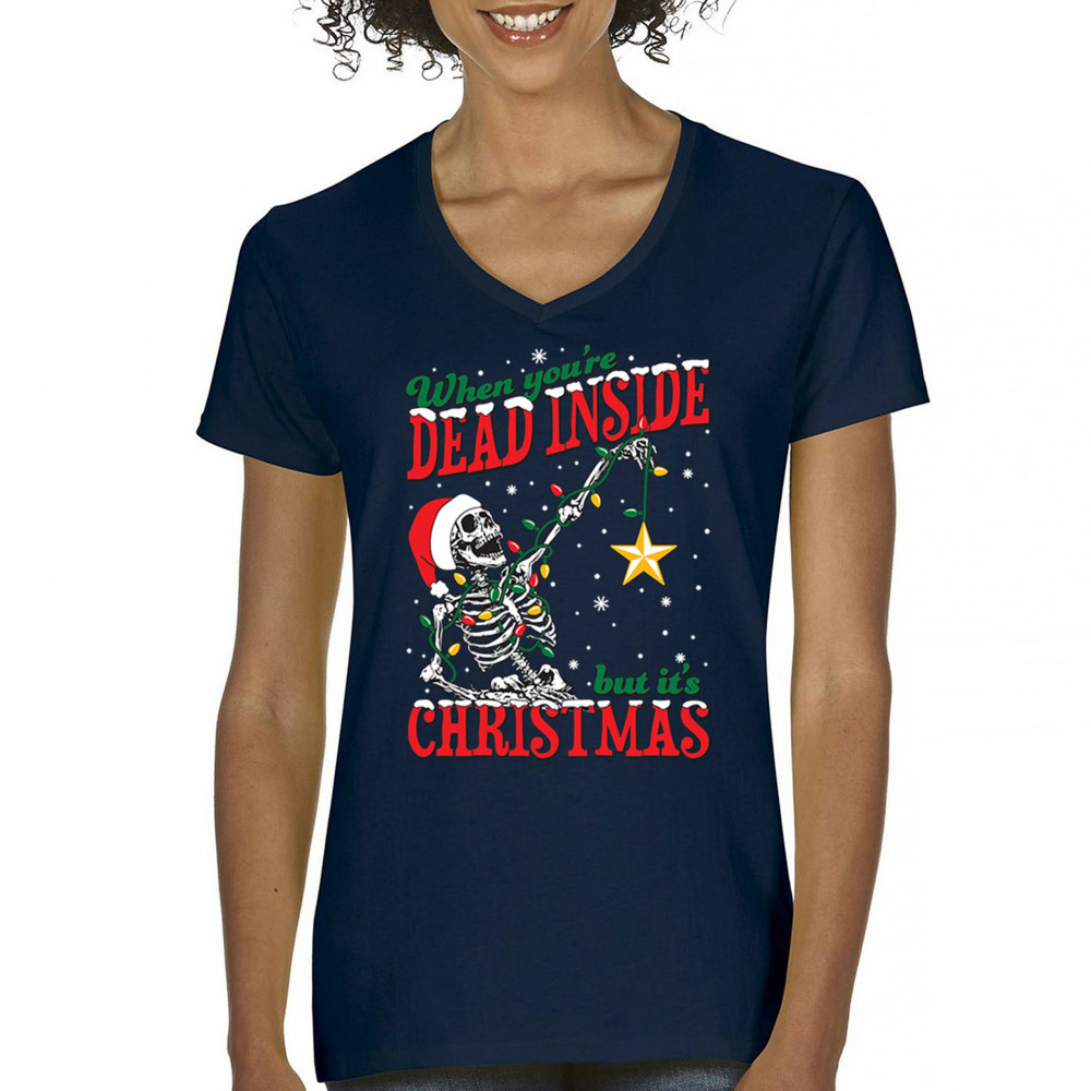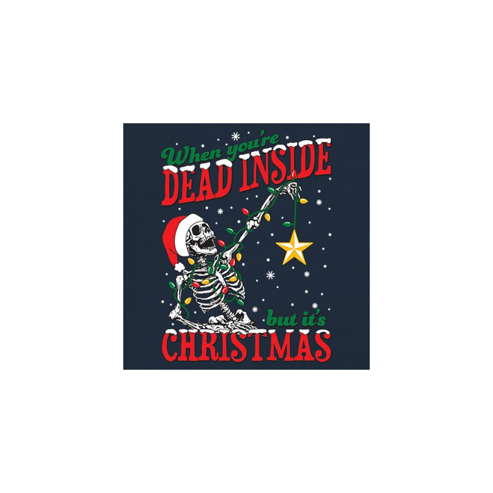 Celebrate humor and holiday spirit with the "When You're Dead Inside But It's Christmas" skeleton design. Perfect for parties and unique gifts.