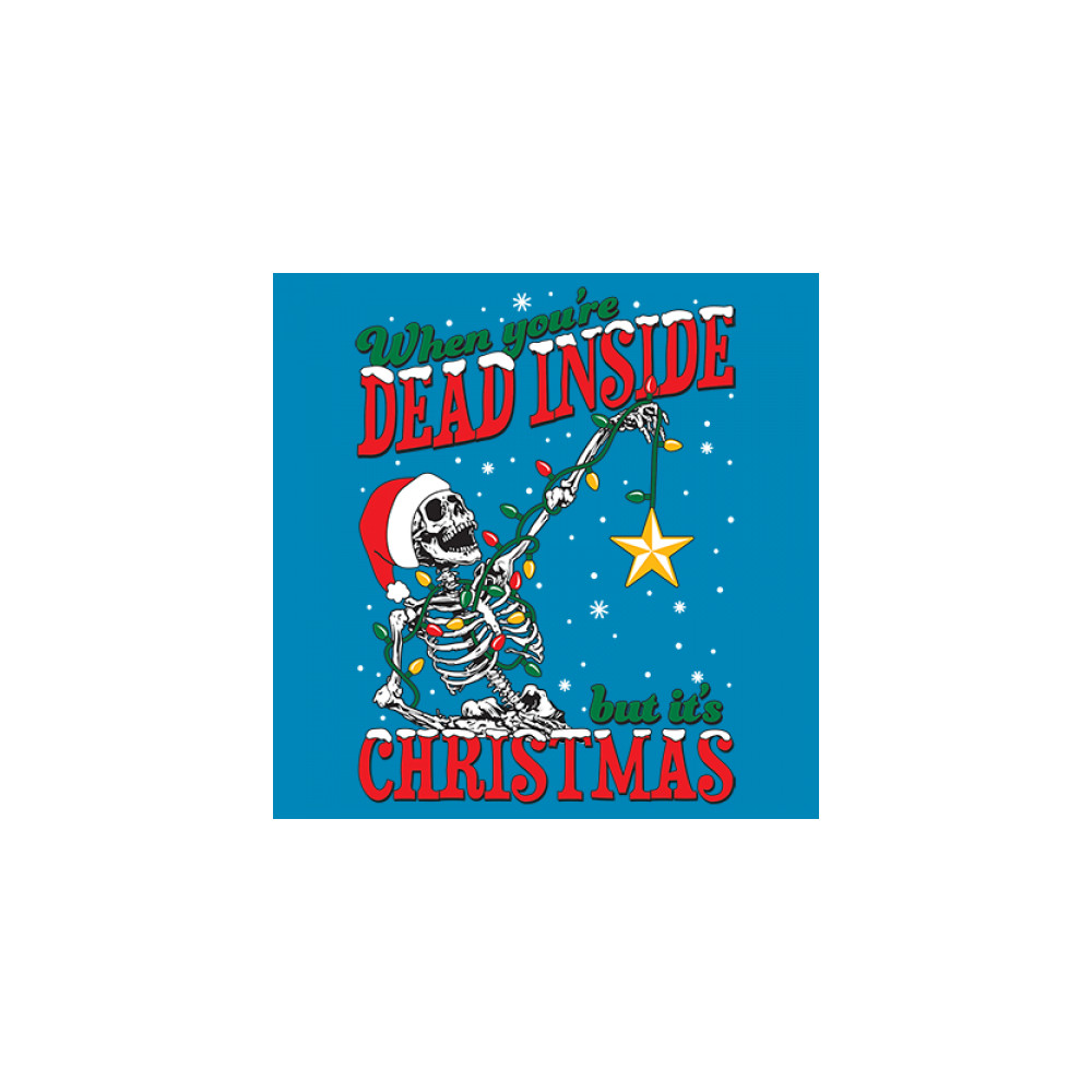 Celebrate humor and holiday spirit with the "When You're Dead Inside But It's Christmas" skeleton design. Perfect for parties and unique gifts.