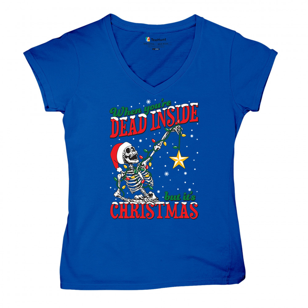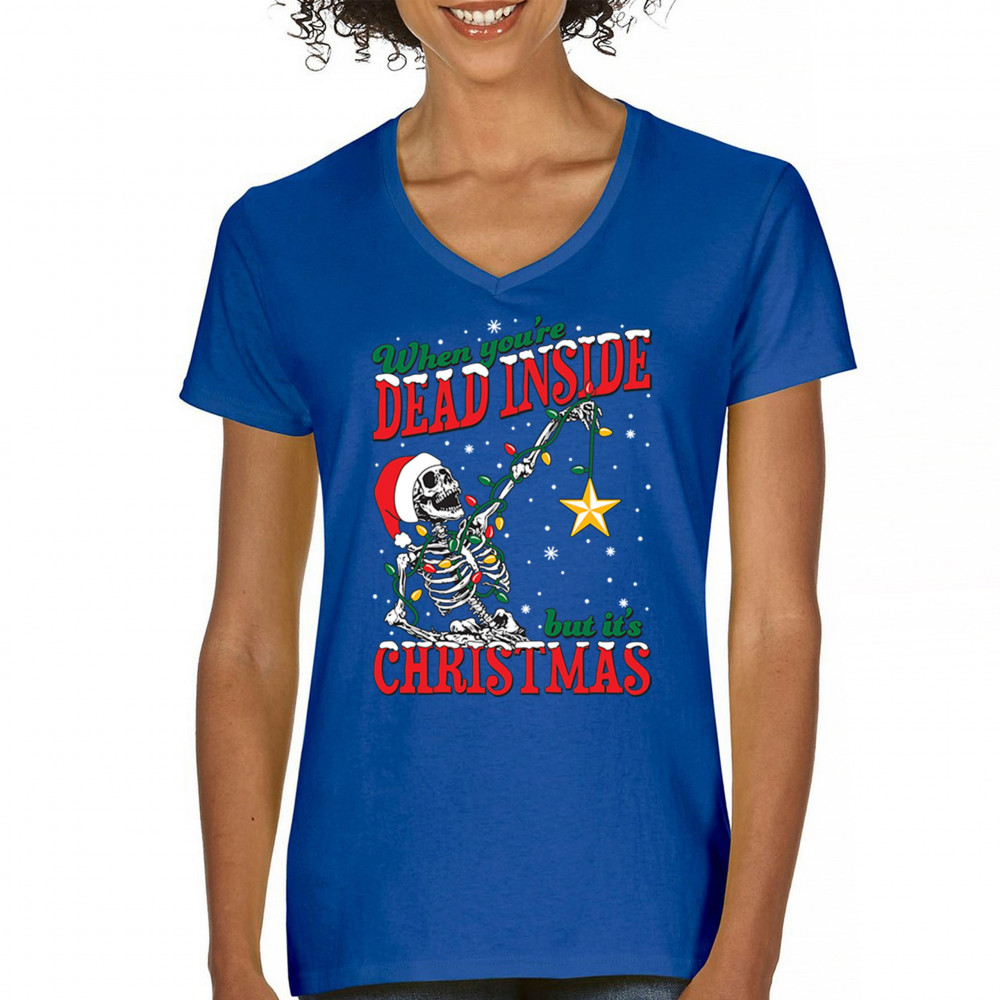 Celebrate humor and holiday spirit with the "When You're Dead Inside But It's Christmas" skeleton design. Perfect for parties and unique gifts.