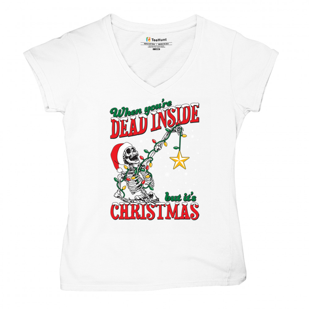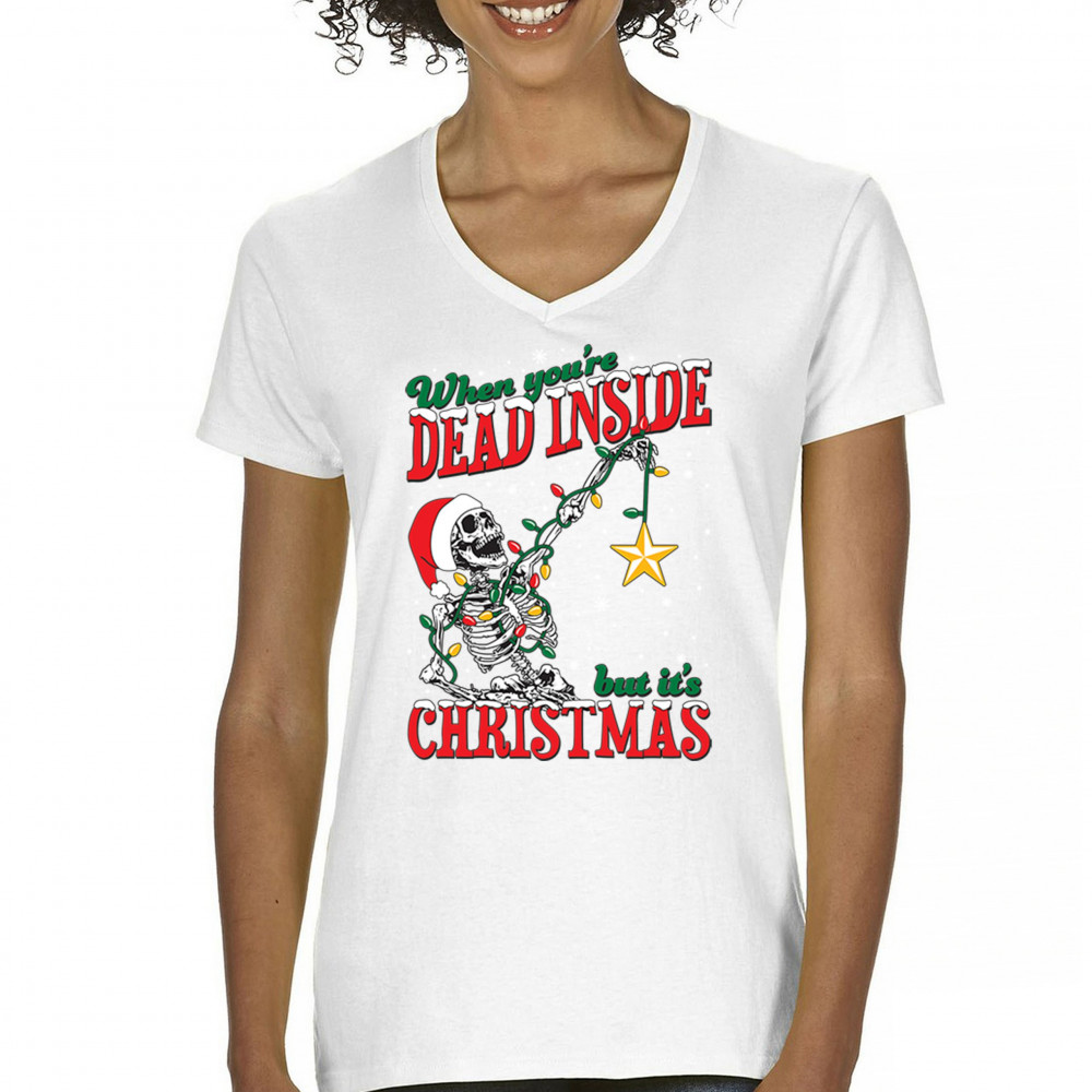 Celebrate humor and holiday spirit with the "When You're Dead Inside But It's Christmas" skeleton design. Perfect for parties and unique gifts.