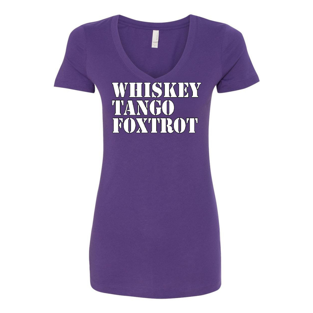 WHISKEY TANGO FOXTROT v-neck t-shirt wtf funny purple