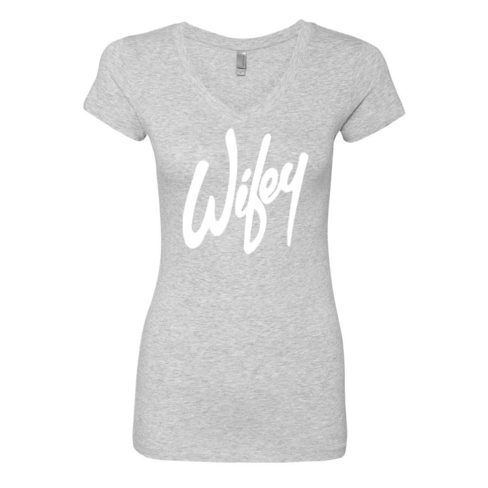 WIFEY v-neck t-shirt wife bride wedding marriage gray