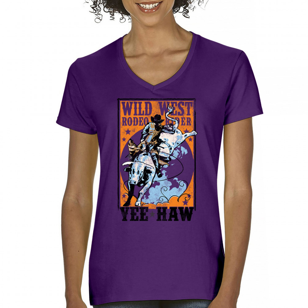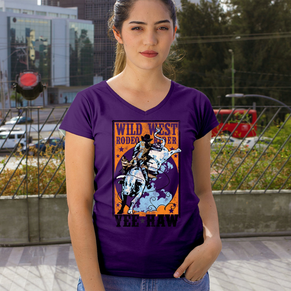 Bold cowboy bull riding design with orange backdrop, perfect for rodeo fans, western events, and country festivals.