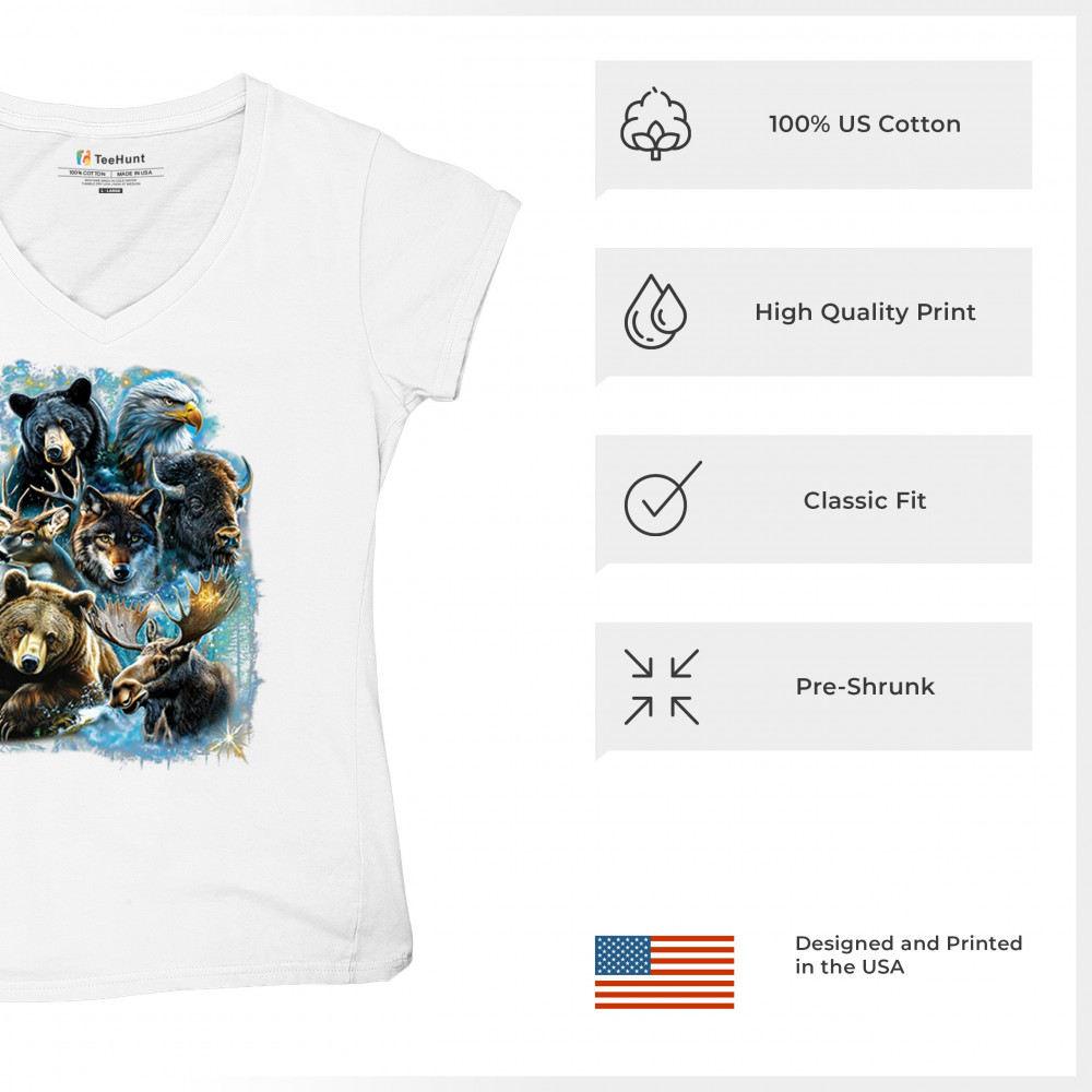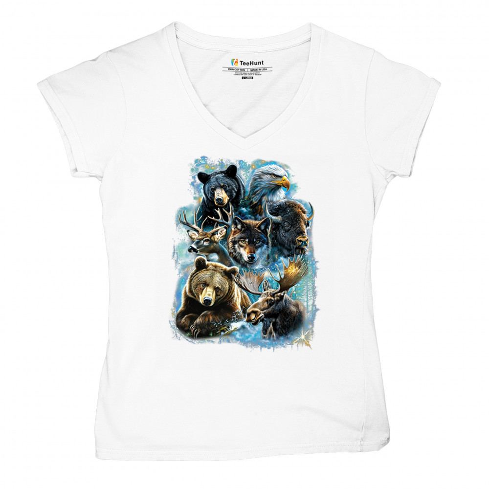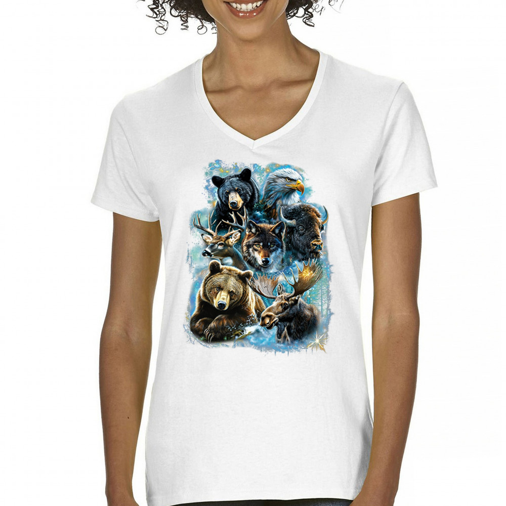 Wilderness design with moose, bear, eagle, bison, and wolf. A bold tribute to forest animals, nature strength, and rugged outdoor spirit.