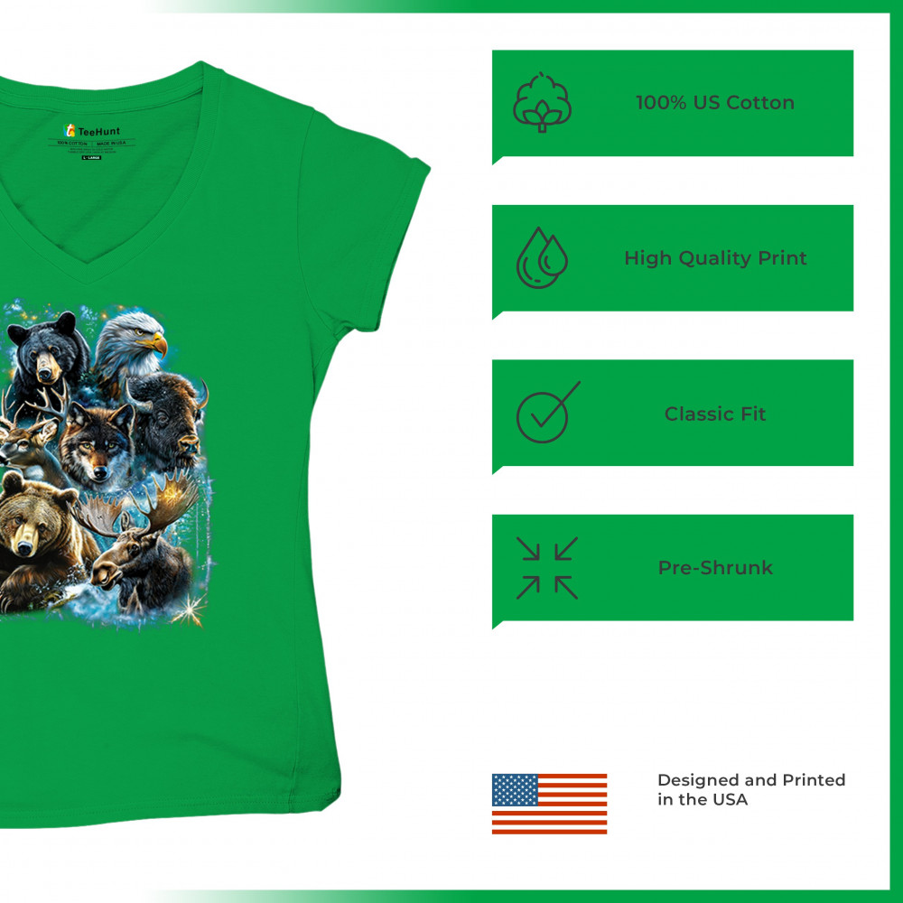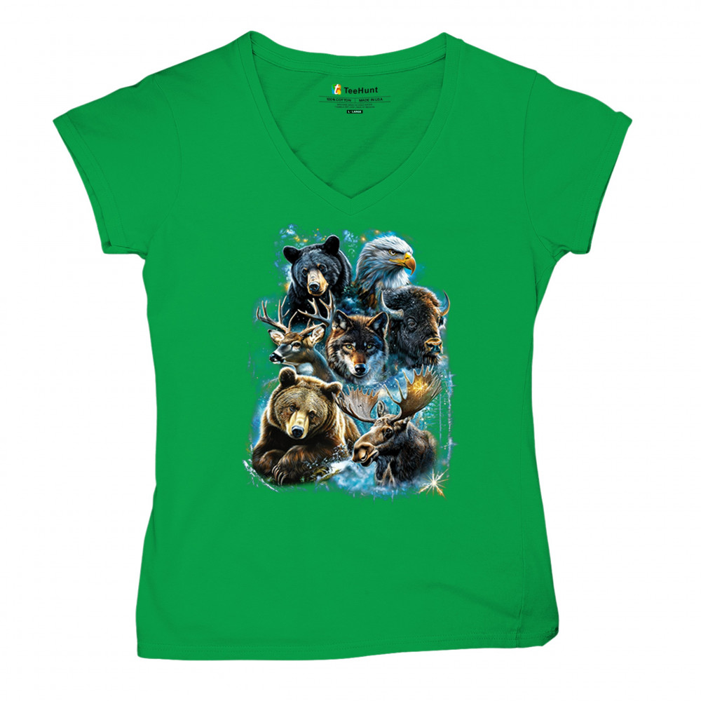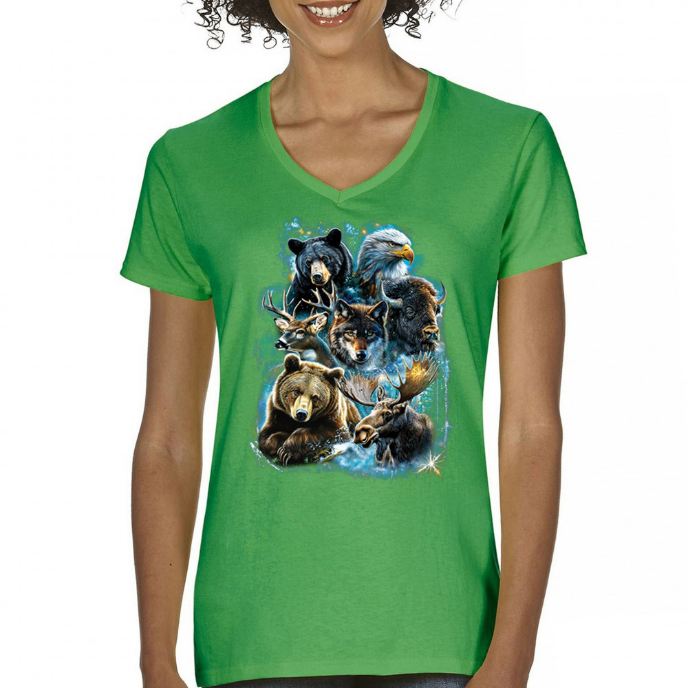 Wilderness design with moose, bear, eagle, bison, and wolf. A bold tribute to forest animals, nature strength, and rugged outdoor spirit.