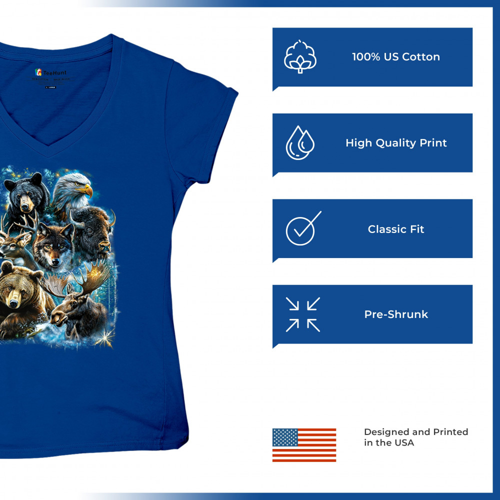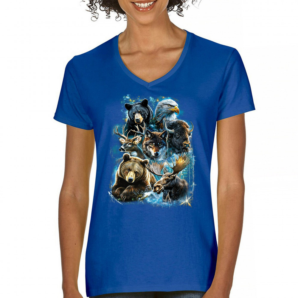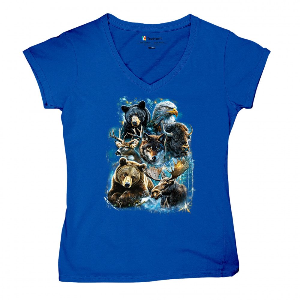 Wilderness design with moose, bear, eagle, bison, and wolf. A bold tribute to forest animals, nature strength, and rugged outdoor spirit.