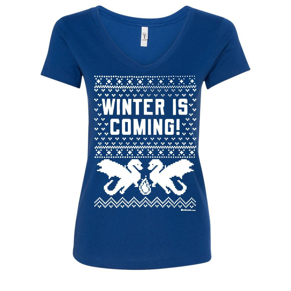 WINTER IS COMING PARODY women's v-neck t-shirt ugly sweatshirt royal blue