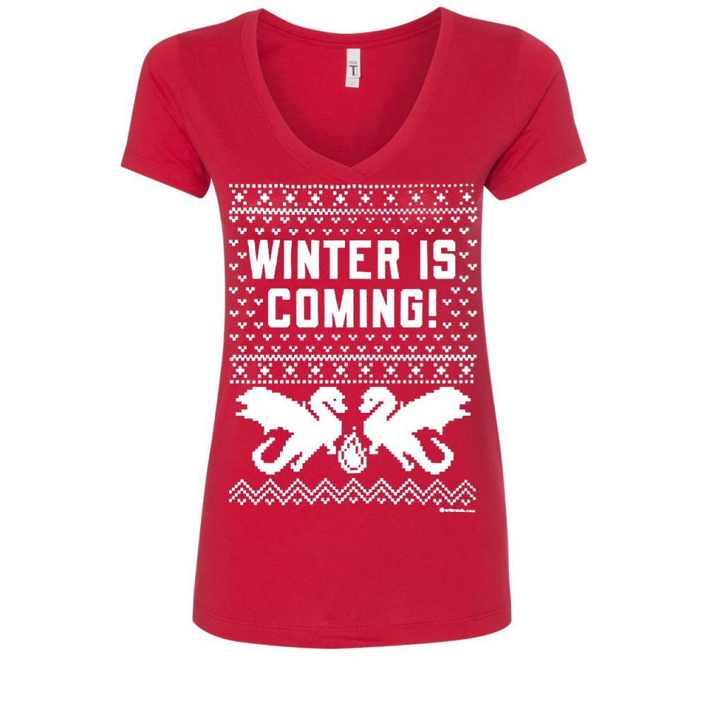 WINTER IS COMING PARODY women's v-neck t-shirt ugly sweatshirt red