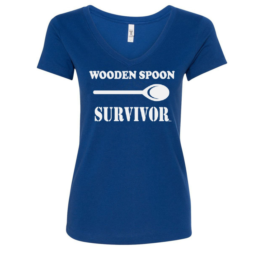 WOODEN SPOON SURVIVOR v-neck t-shirt funny college humor royal blue