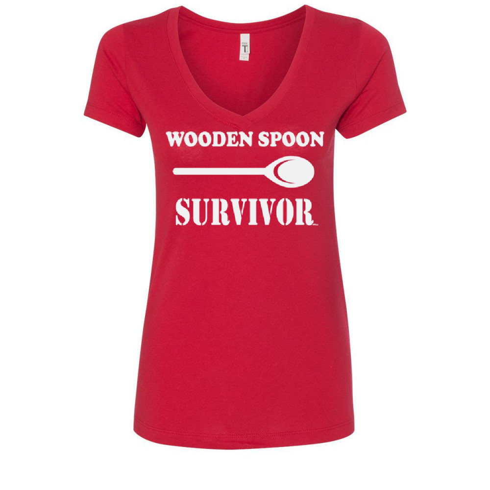 WOODEN SPOON SURVIVOR v-neck t-shirt funny college humor red