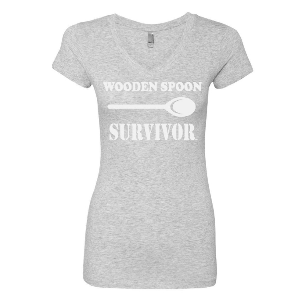 WOODEN SPOON SURVIVOR v-neck t-shirt funny college humor gray