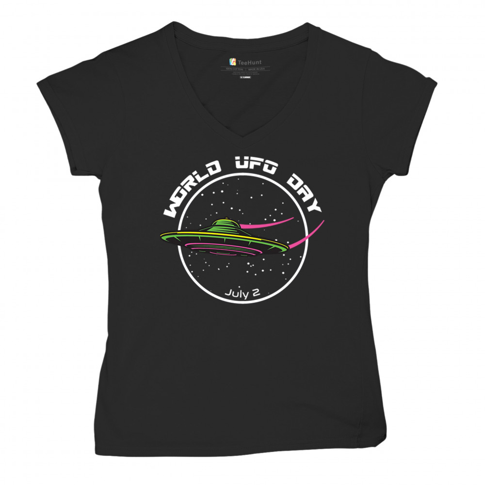 Celebrate World UFO Day on July 2nd with a captivating design featuring a sleek UFO against a starry sky. Perfect for space enthusiasts and UFO lovers.