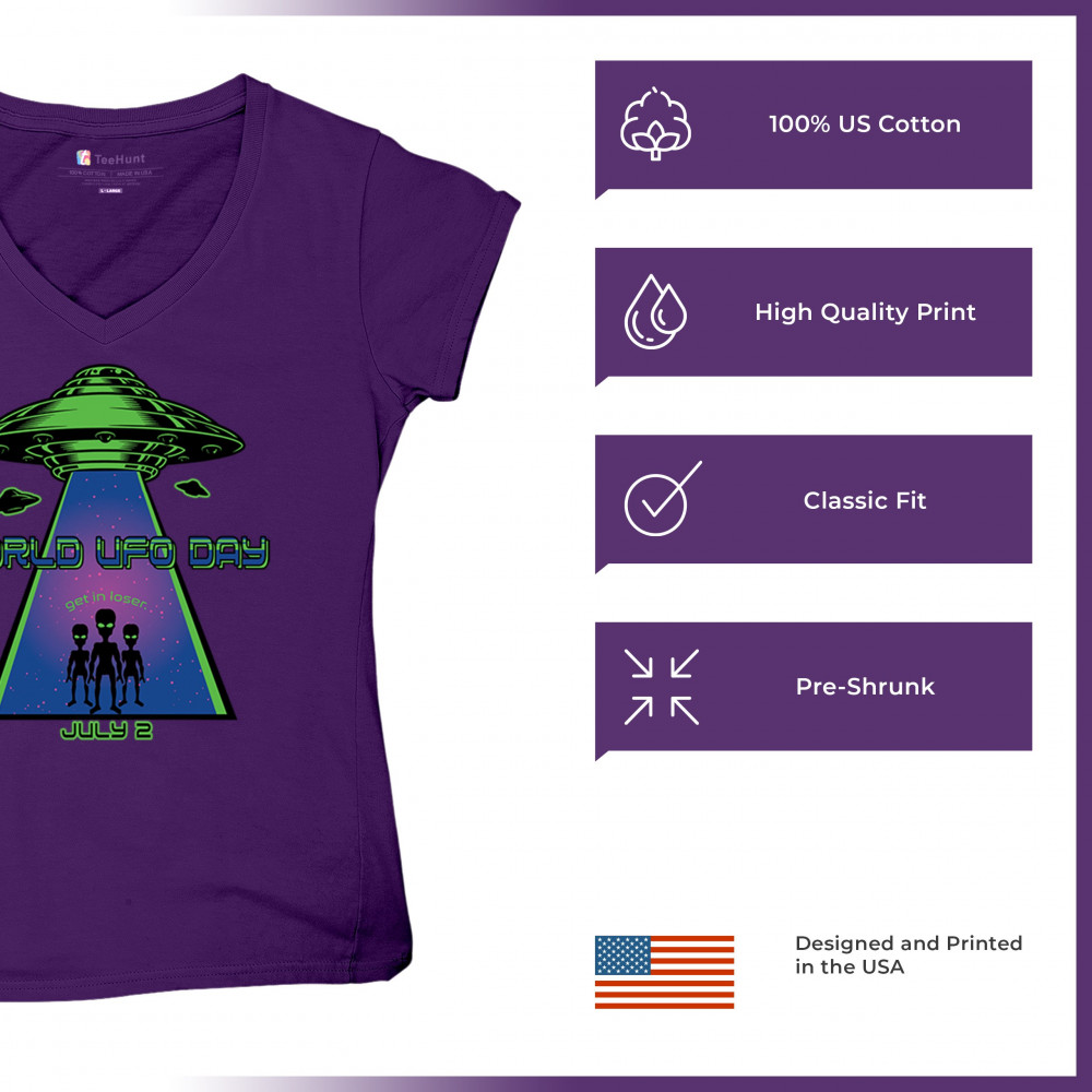 Join the celebration of World UFO Day with this unique design, featuring a detailed UFO beaming up three cheerful aliens with the phrase "Get in, loser." Perfect for those who are fascinated by the unknown and have a sense of humor about extraterrestrial life. Whether you're attending a UFO event, meeting with fellow enthusiasts, or just want to express your quirky style, this design is a must-have. Embrace the spirit of curiosity and fun with this eye-catching design for July 2nd.