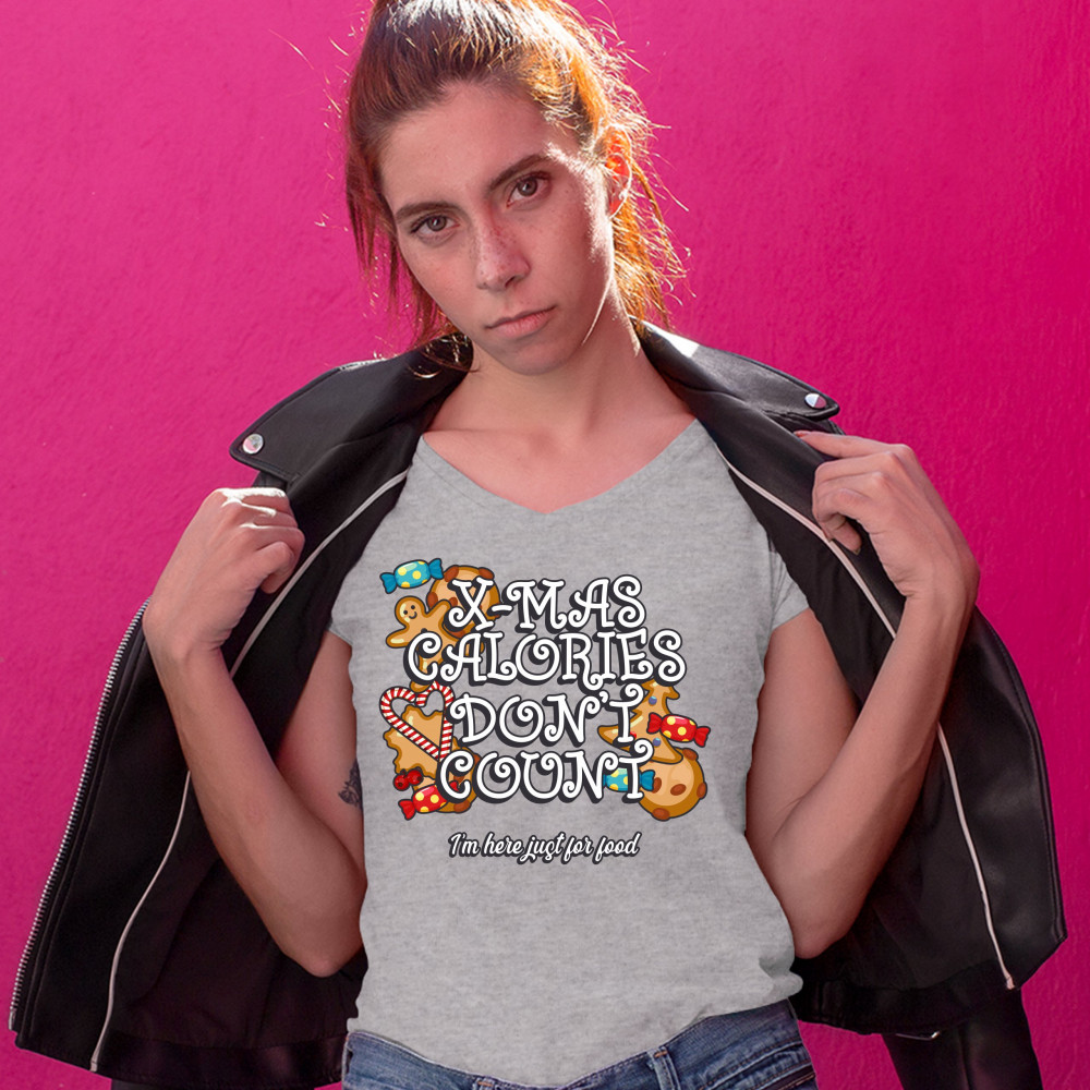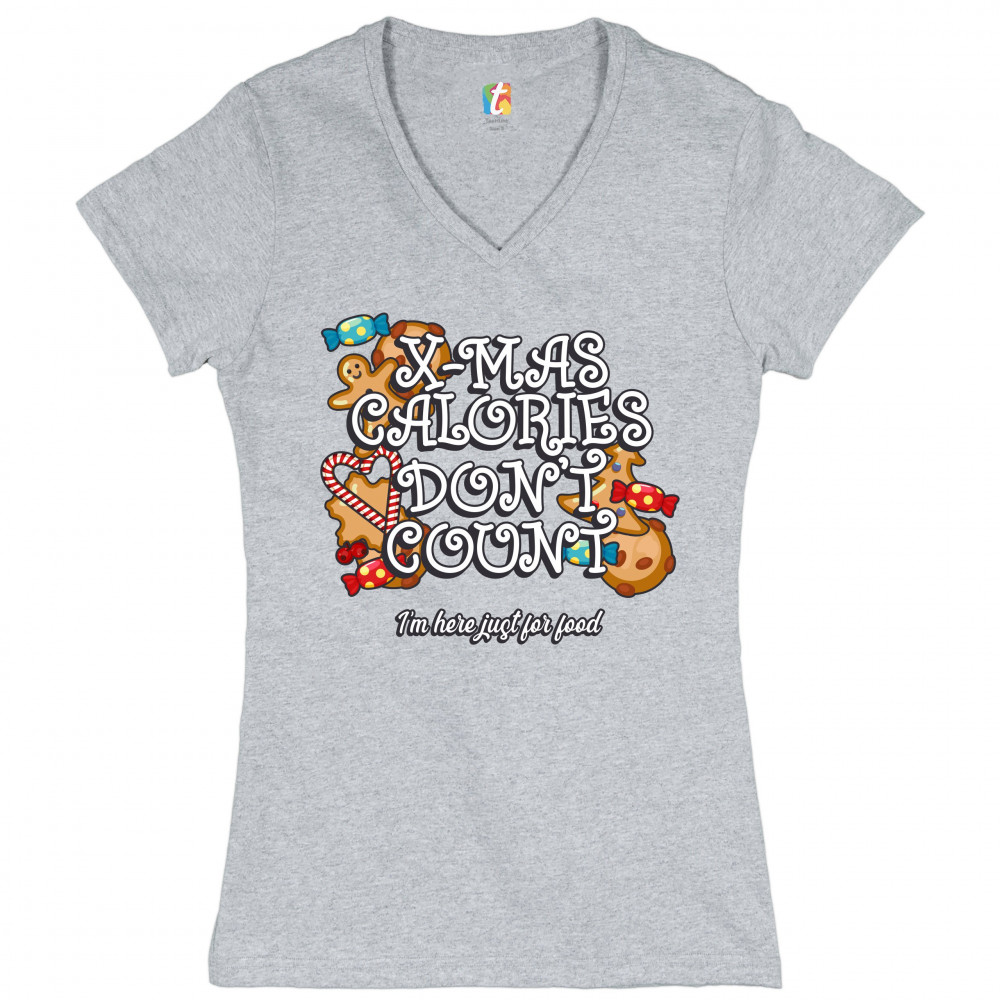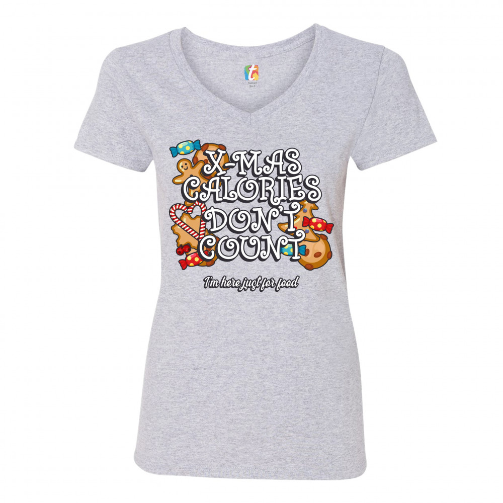 X-MAS CALORIES DON'T COUNT women's v-neck t-shirt merry christmas funny tee gray