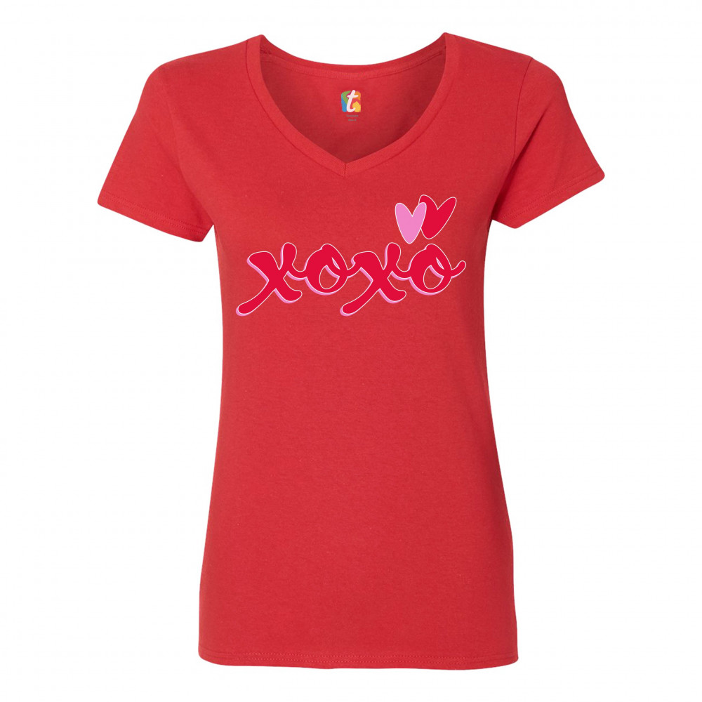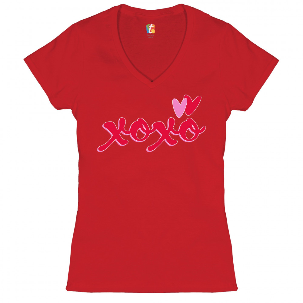 XOXO women's v-neck t-shirt romance valentine's day hearts passion love tee red