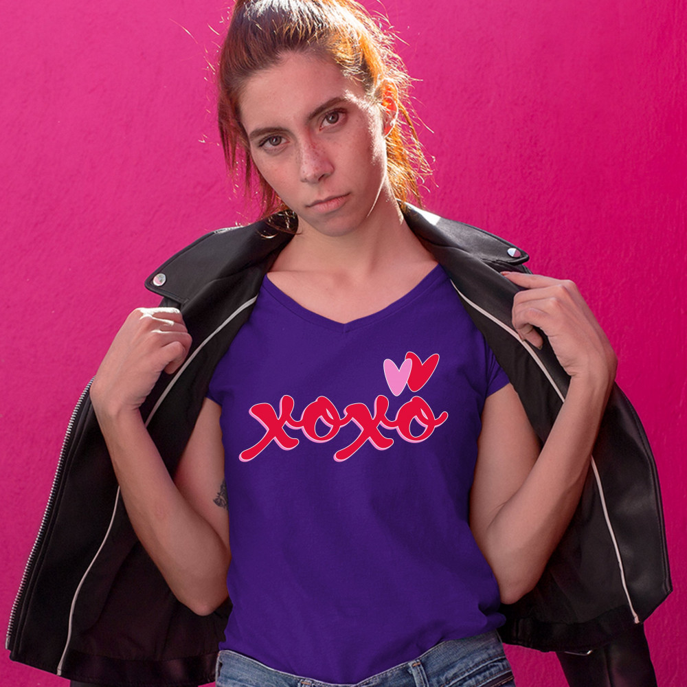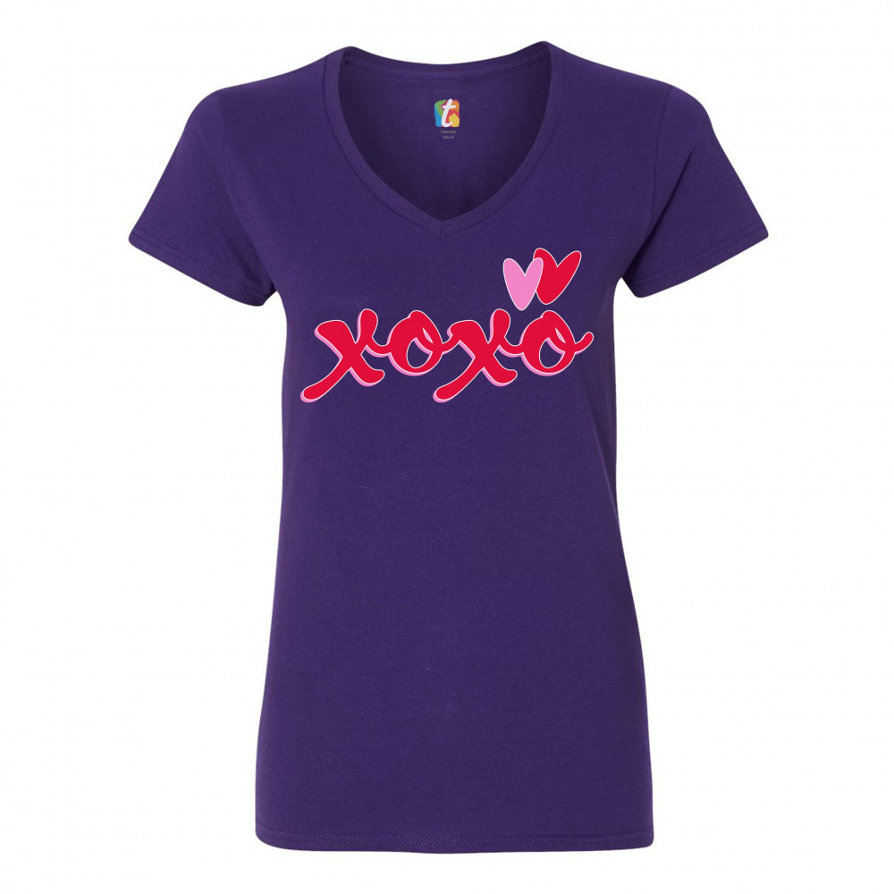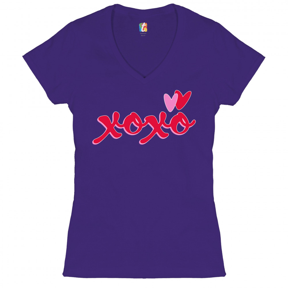 XOXO women's v-neck t-shirt romance valentine's day hearts passion love tee purple
