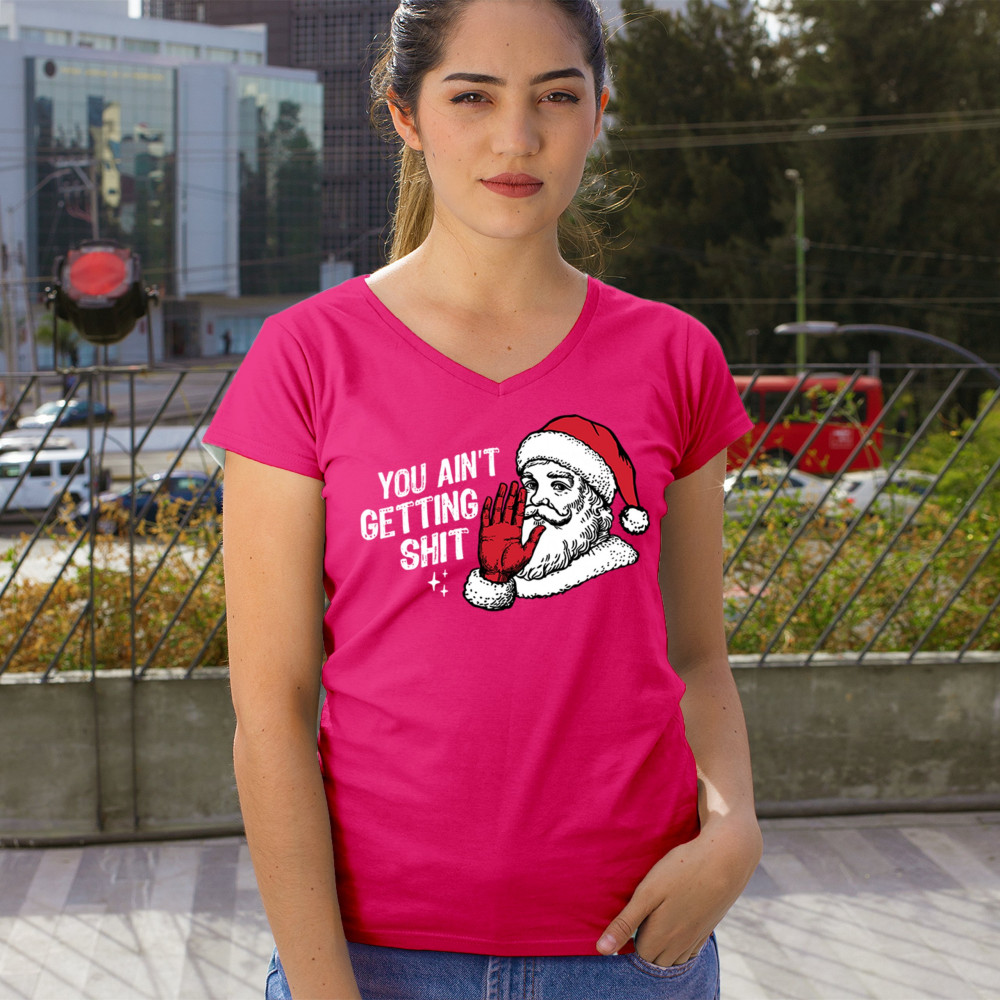 Funny Santa Christmas design with sarcastic Grumpy humor, Merry Xmas parody, Let It Snow style, Jingle Bells laughs, and Christmas tree vibes.