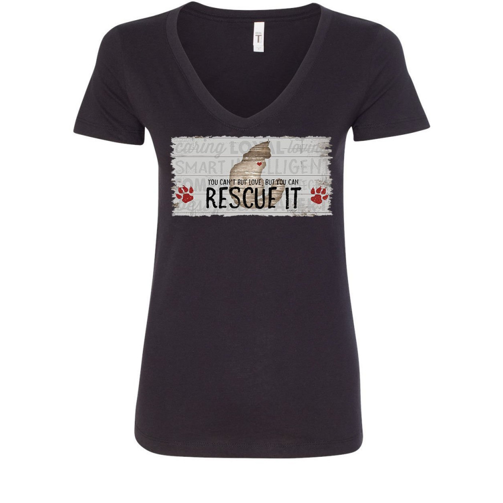 YOU CAN'T BUY LOVE but you can rescue it women's v-neck t-shirt pet cat kitten black