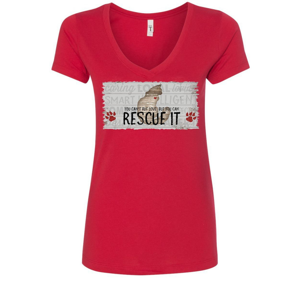 YOU CAN'T BUY LOVE but you can rescue it women's v-neck t-shirt pet cat kitten red